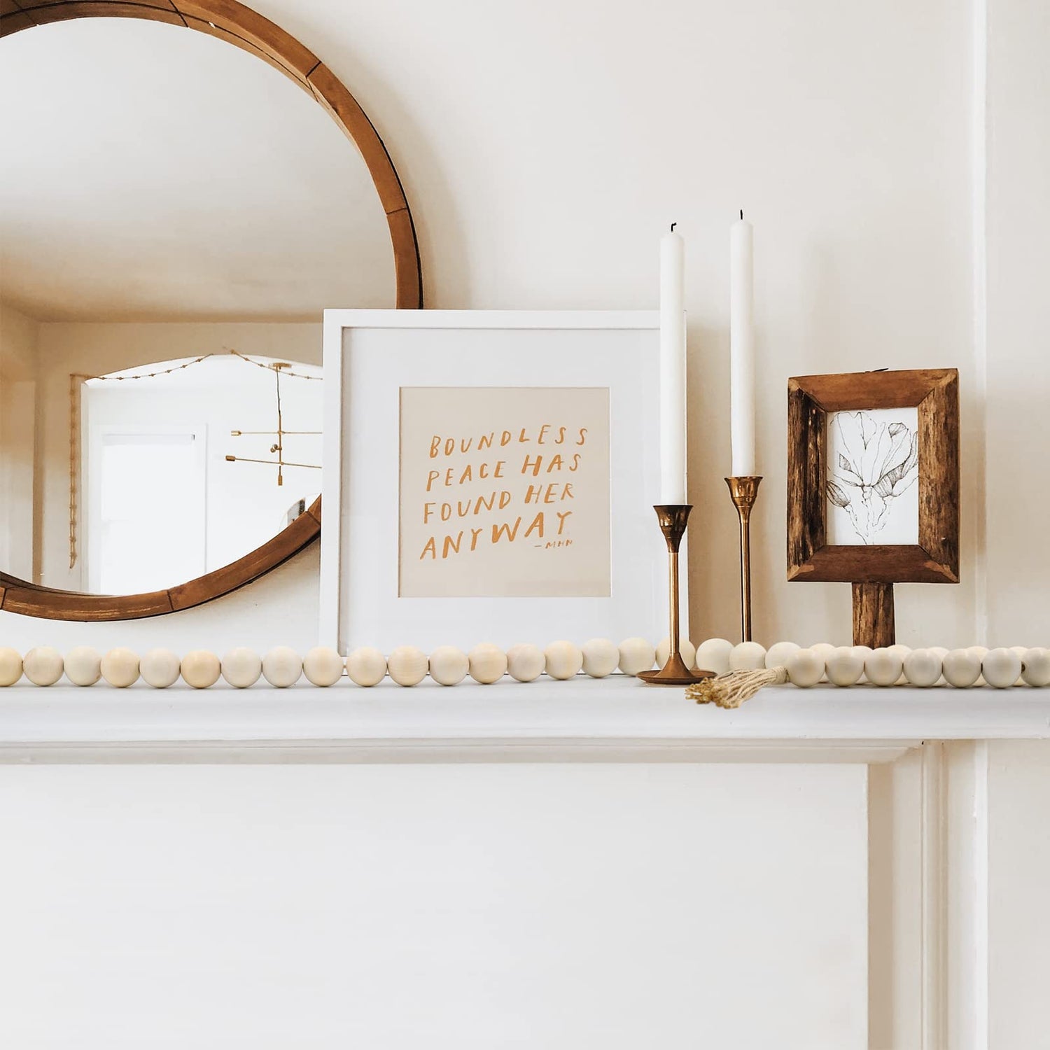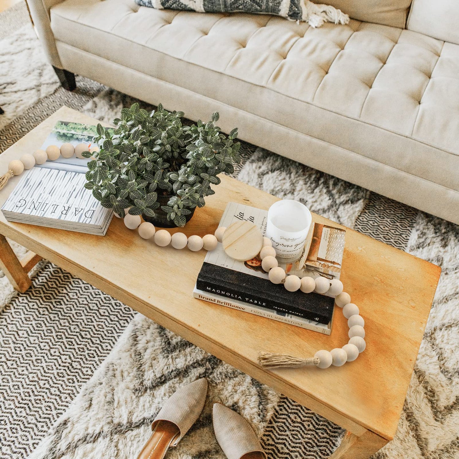 AceList 72in Large Wood Bead Garland Decorative Beads with Tassels, Long Wooden Beads Garland, Coffee Table Decor, Perfect Boho Farmhouse Bookshelf Mantel Tray Centerpiece Ornament (1.5" Diameter)