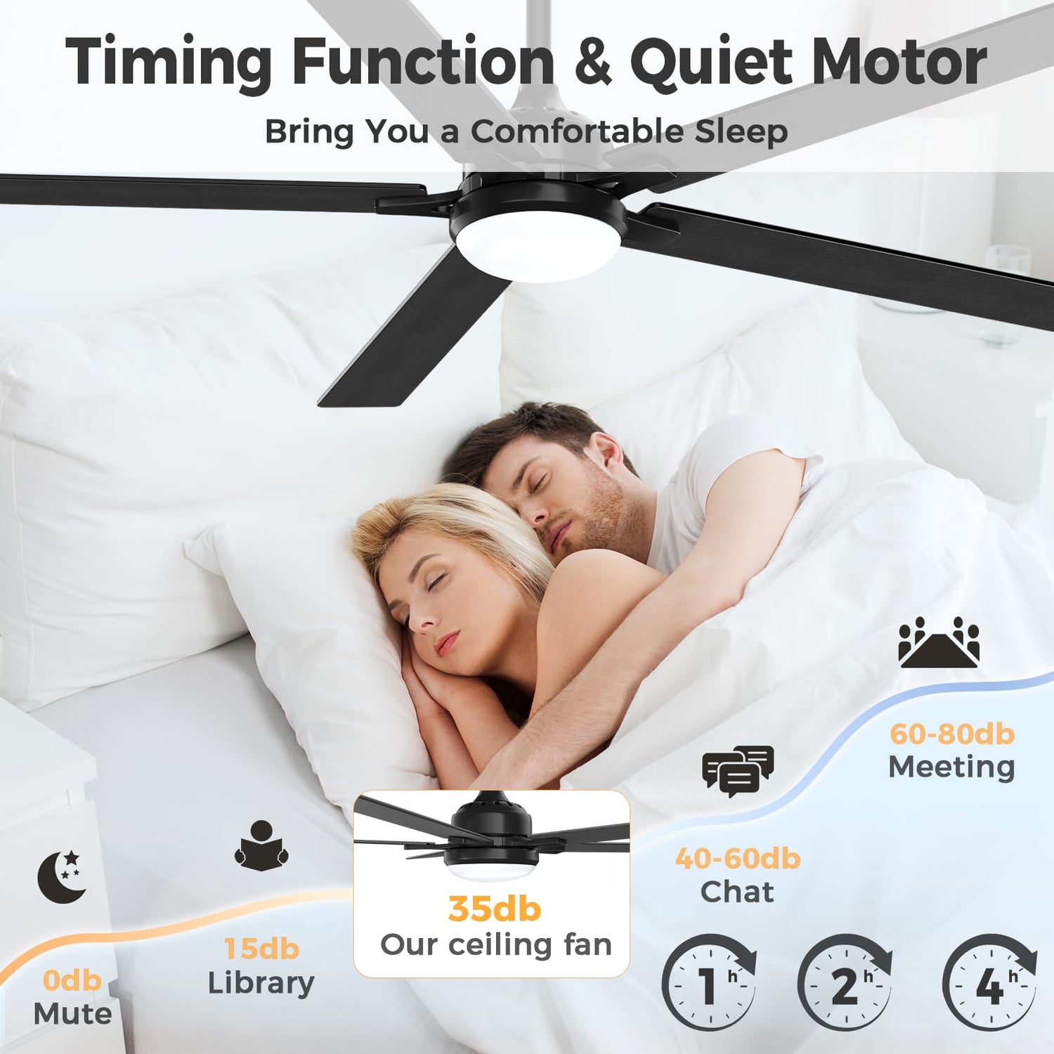Acesal 72 Inch Ceiling Fans with Lights&App-Large Outdoor Ceiling Fan with Quiet DC Motor Dimmable 6 Speeds Timing Reversible Modern Industrial Ceiling Fan for Living Room Patio Indoor Outdoor-Black