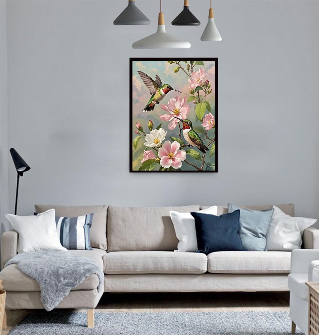 ACIOPPL Paint by Numbers for Adults Beginner Hummingbird DIY Acrylic Painting Kits Bird Oil Painting by Number Kit Bird Drawing Paintwork Acrylic Paint Canvas for Home Wall Decor Flower Hummingbird