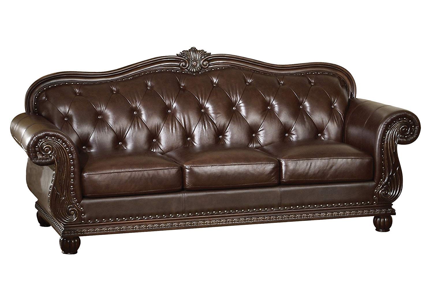 Details: The Anondale collection reflects completely classic and elegant style, expertly crafted with rich espresso top grain leather match upholstery. Includes classic features button tufted back, generous rolled armrests, decorative molding trim and oversized seating will make it perfect choice for your living room environment.