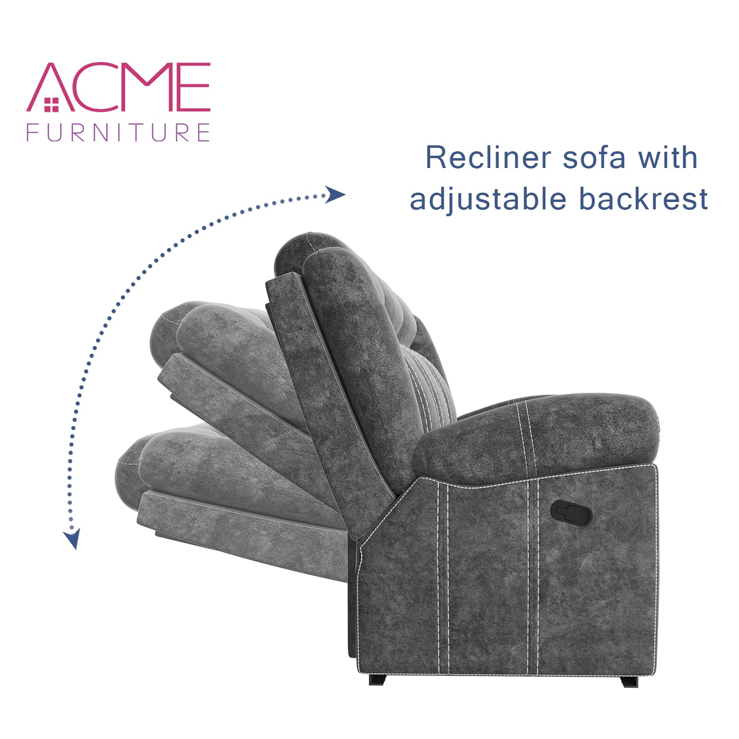 Acme Furniture Zubaida 41" x 87" Modern Velvet Reclining Sofa with USB Dock, 1 Storage Drawer, Tight Back & Seat Cushion, in 2-Tone Gray Finish