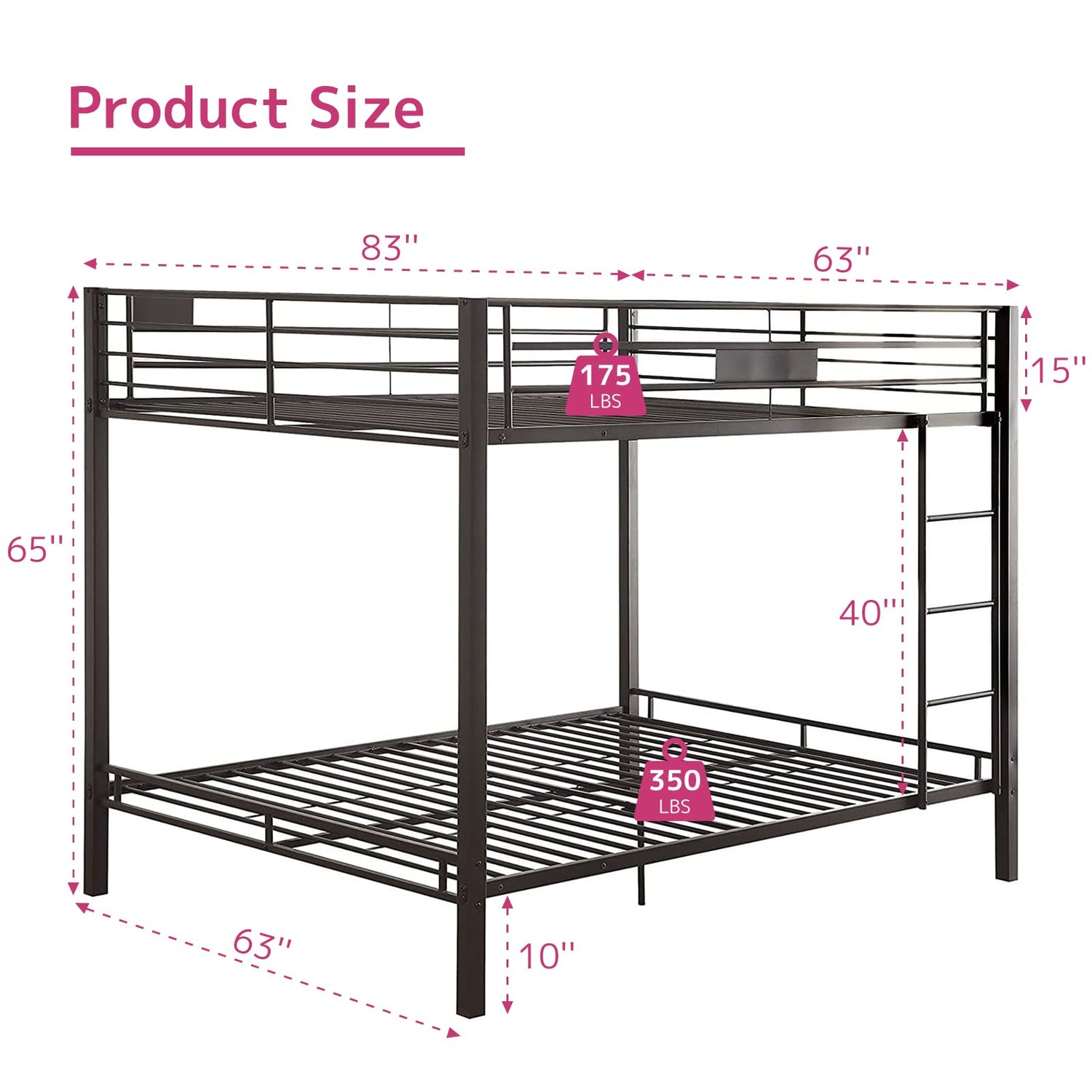 Acme Kaleb Metal Frame Queen Over Queen Bunk Bed with Ladder in Sandy Black