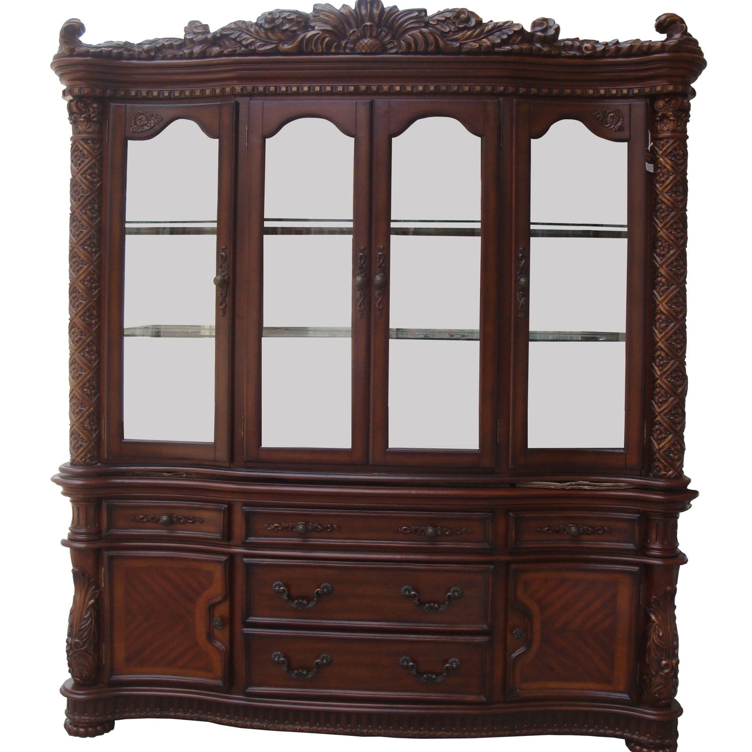Acme Vendome Glass and Wood Buffet with Hutch in Cherry