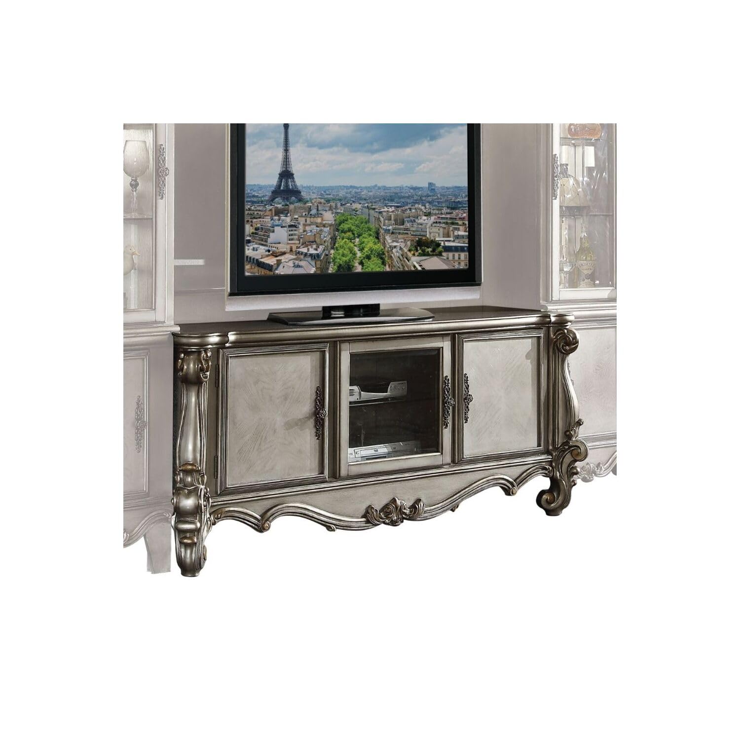 Acme Versailles 3-Door Wooden TV Console in Antique Platinum and Gray