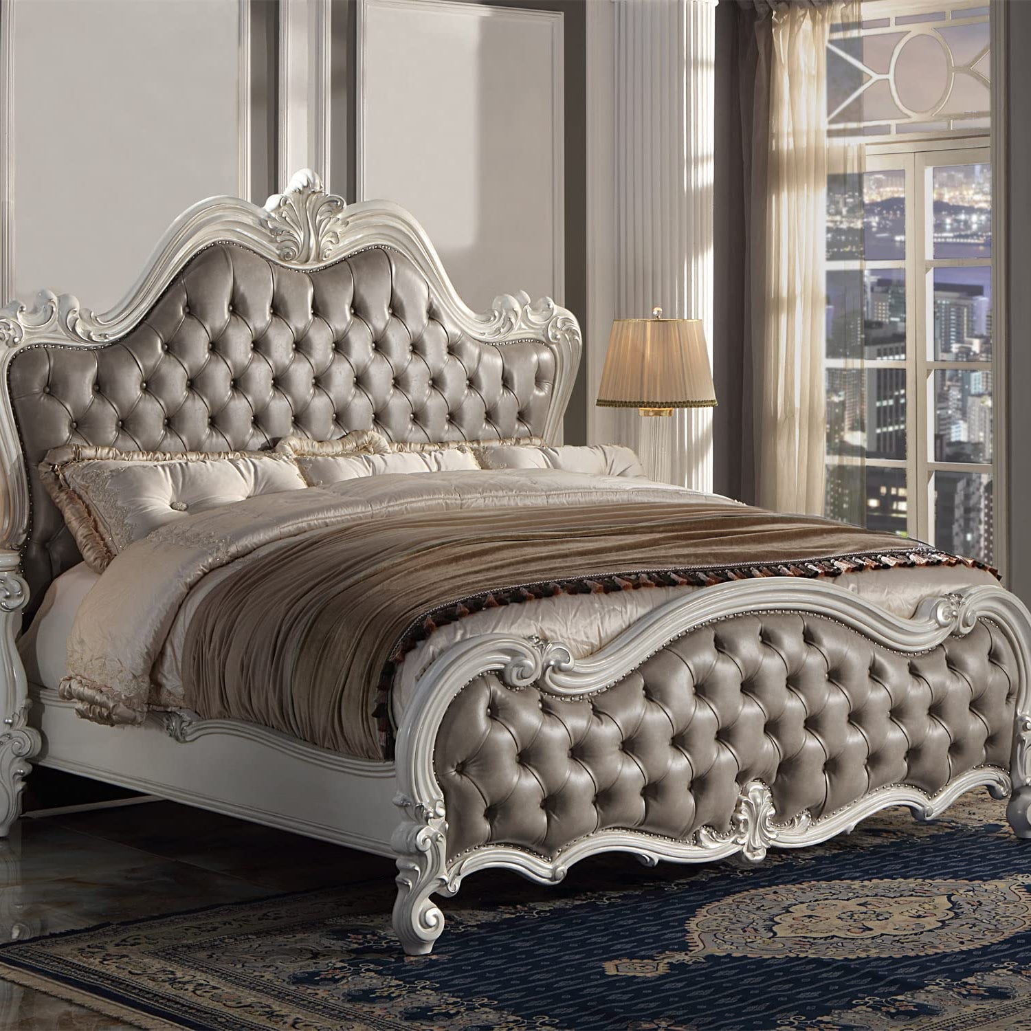 Acme Versailles II California King Bed in Vintage Gray Polyurethane and White