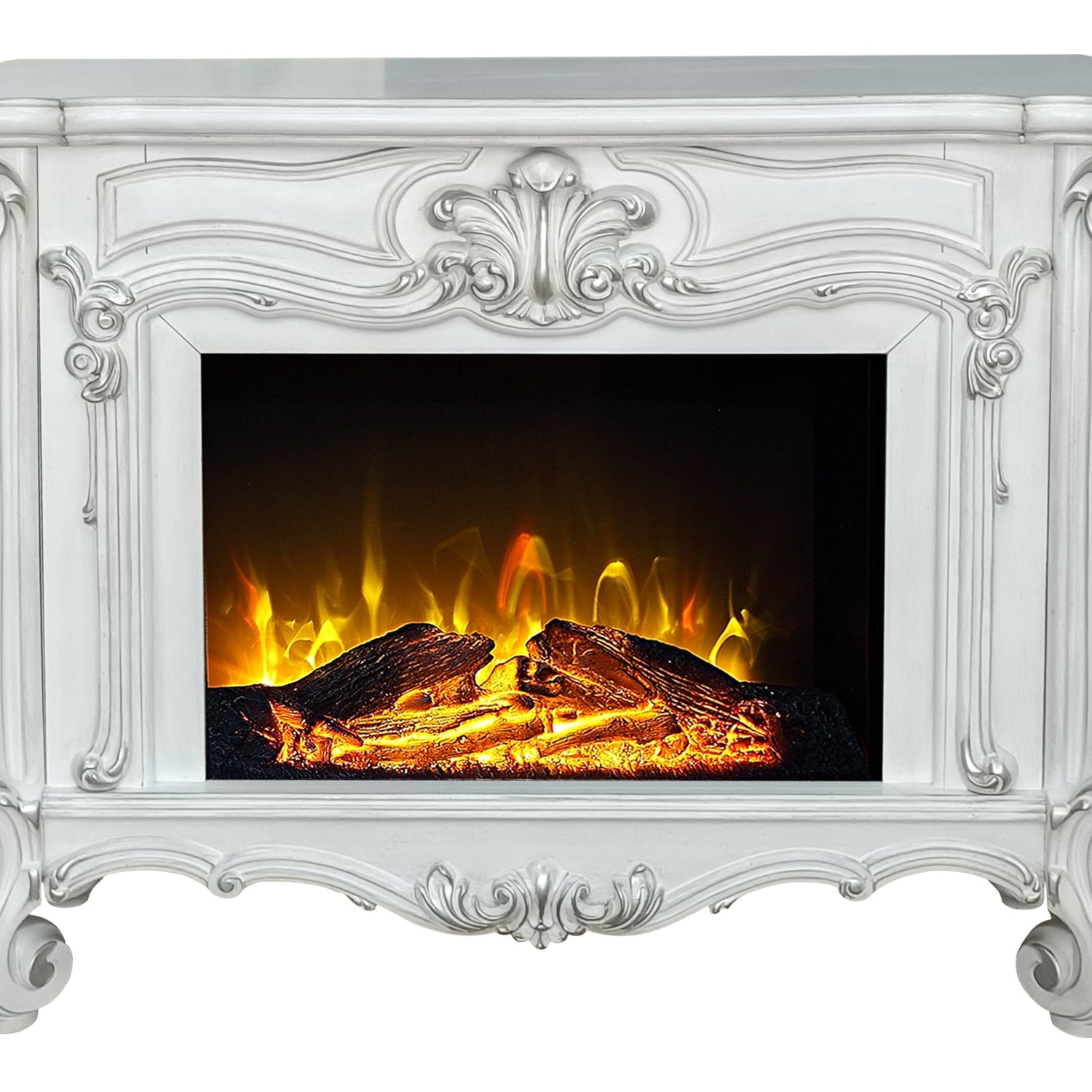 Acme Versailles Rectangular Carving Wooden Frame Fireplace in Bone White