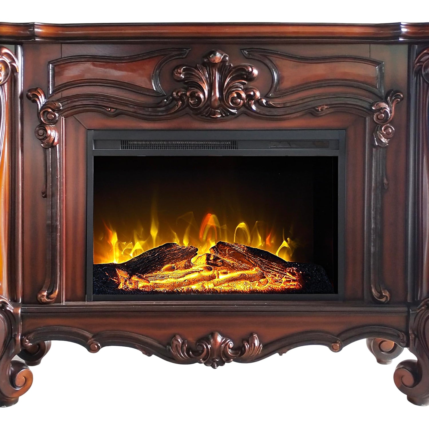 Acme Versailles Rectangular Carving Wooden Frame Fireplace in Cherry Oak