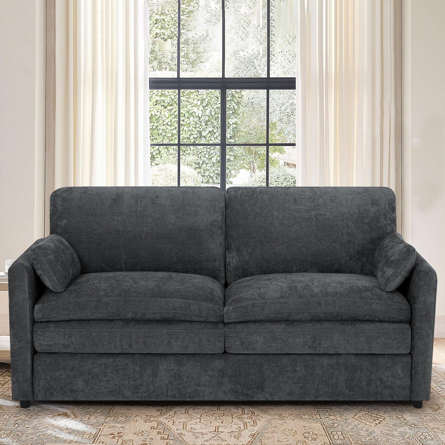 ACMEASE 69” Chenille Loveseat Sofa w/Arm Pillows, Upholstered 2-Seater Sofa w/Comfortable Back Cushions, Modern 2 Seats Couch w/High-Density Foam for Living Room, Apartment, Office, Grey