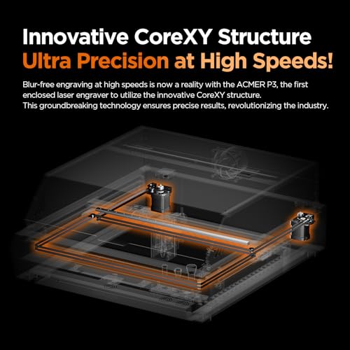 - 【Ultra High Precision & Speed】The world's first laser engraver with CoreXY structure and motion compensation algorithm, solve the problem of blurred engraving effects and frame loss under high-speed motion,ACMER P3 laser engraving machine adopts industrial guide rails instead of wheels, which improves the stability by 20%.P3 laser head adopts 0.08mm compressed spot technology to realize detailed and realistic engraving images. The engraving precision reaches 0.01mm.Maximum engraving speed up to 48000mm/min, enables higher-efficiency batch processing.