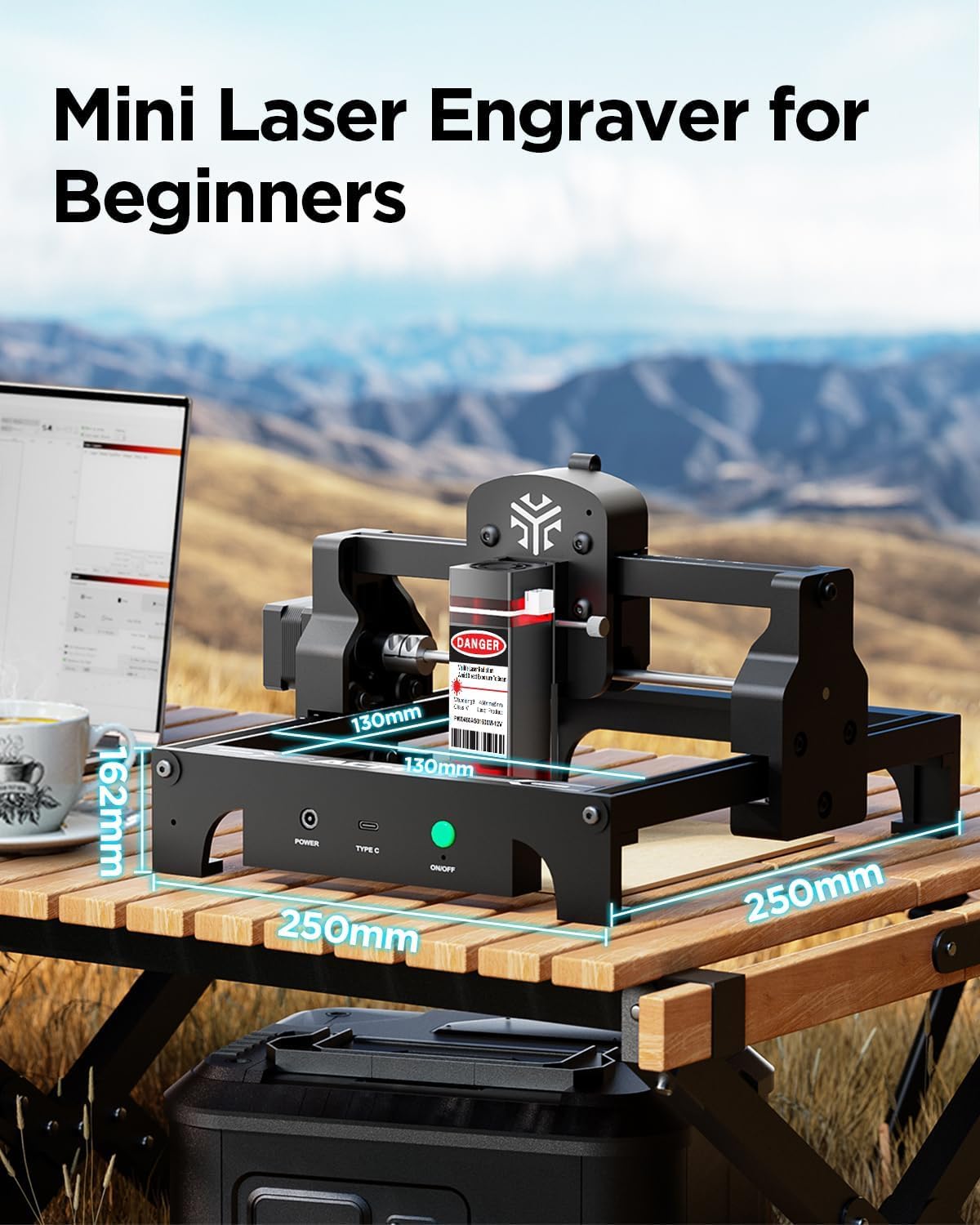 - Preassembled & Beginner-Friendly: Unlike complex DIY kits, the Acmer S1 laser engraving machine comes fully preassembled, requiring just a simple 1-minute installation for the laser head and focusing. Its user-friendly setup makes it an ideal engraving machine for beginners, DIY enthusiasts, and professionals looking for a hassle-free experience.