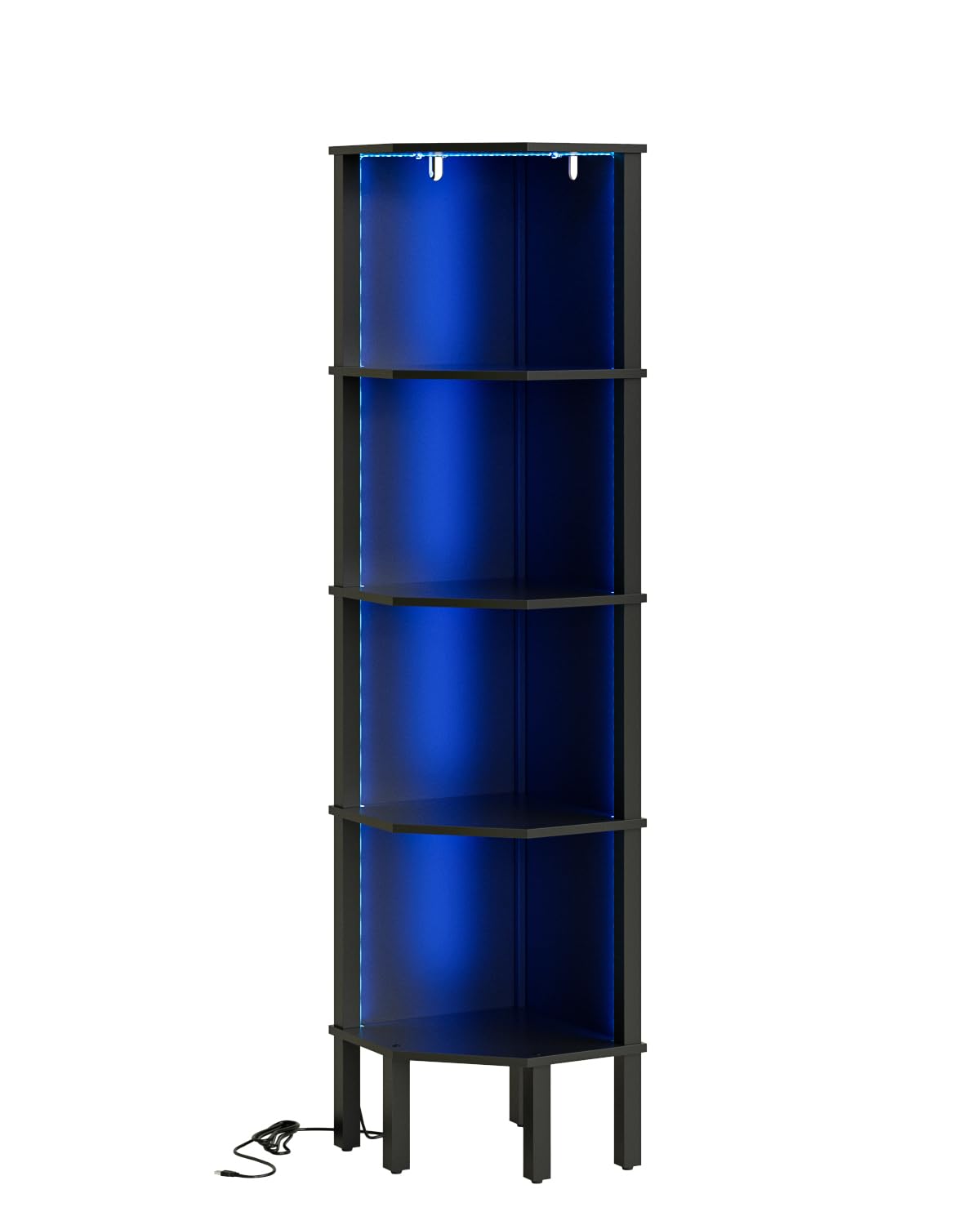 Acodaiuy Corner Shelf, 5 Tier Corner Bookshelf with LED Light,Wall Display Corner Shelf Stand with Storage Rack for Living Room,Bedroom,Office,Black