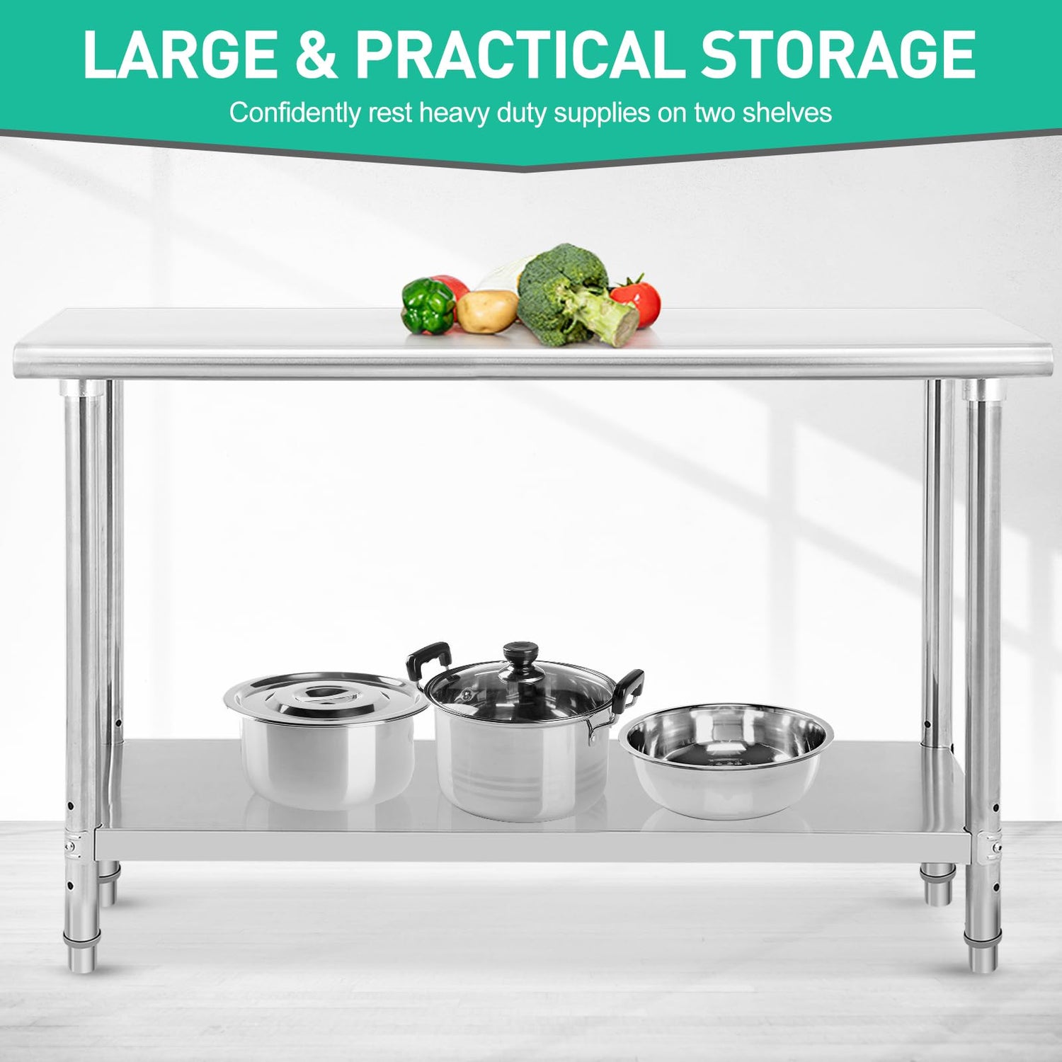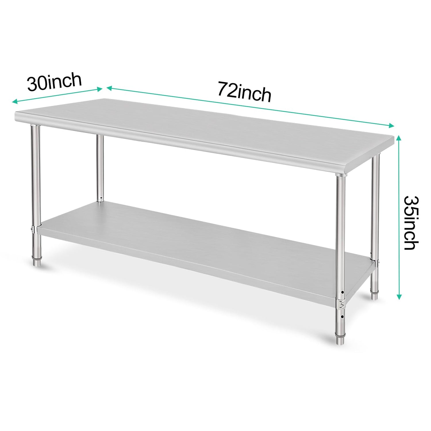 - Premium Stainless Steel Work Table: This heavy-duty work table is a perfect choice for commercial/home use, and meal prep in restaurants and kitchens. Stainless steel surfaces are easy to clean and more sturdy than wood or glass, ensuring food and liquids won't stick or damage the surface. Suitable for food prep, storage and various applications, this work table offers long-lasting performance with anti-corrosion properties. Meeting the standards for public health protection.