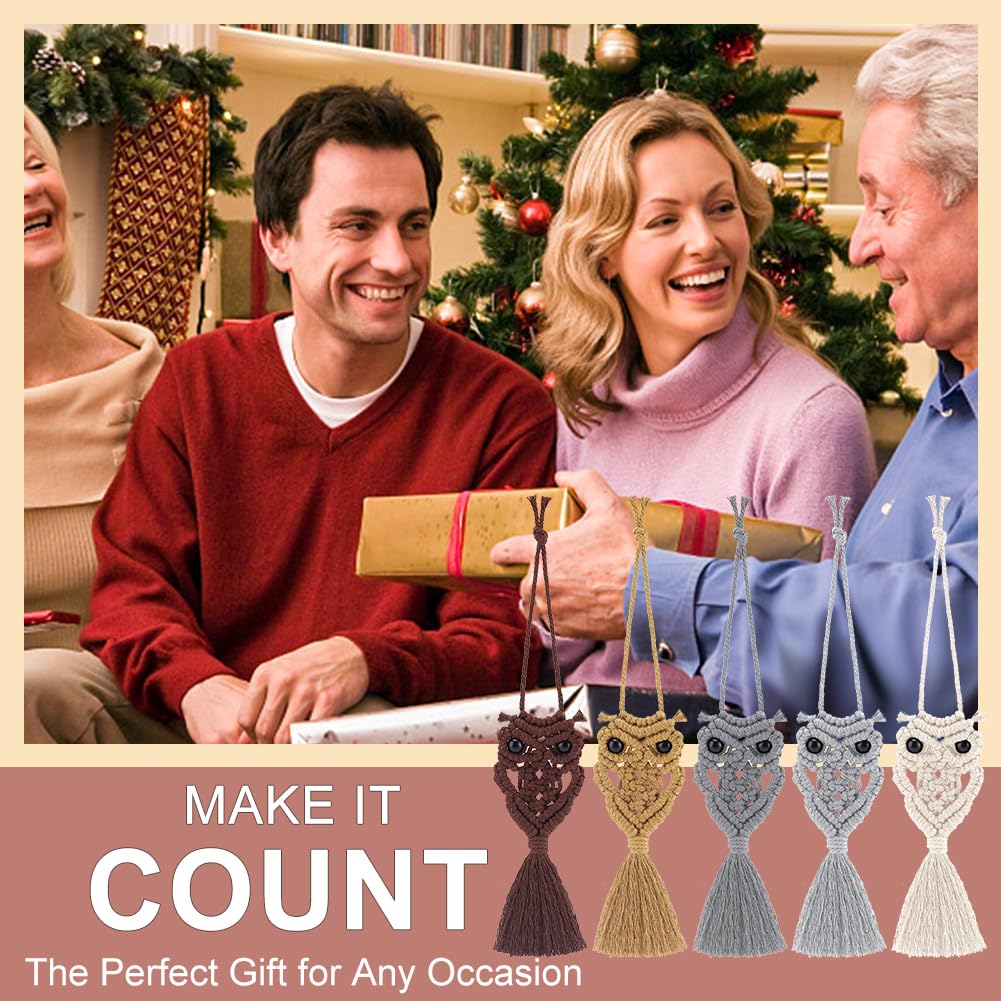 ACRNIGHEET 5PCS Macrame Owl Wall Hanging Kit for Adults Beginners, Boho DIY Macrame Starter Kit with Video Instructions, Home Decor Craft Kit