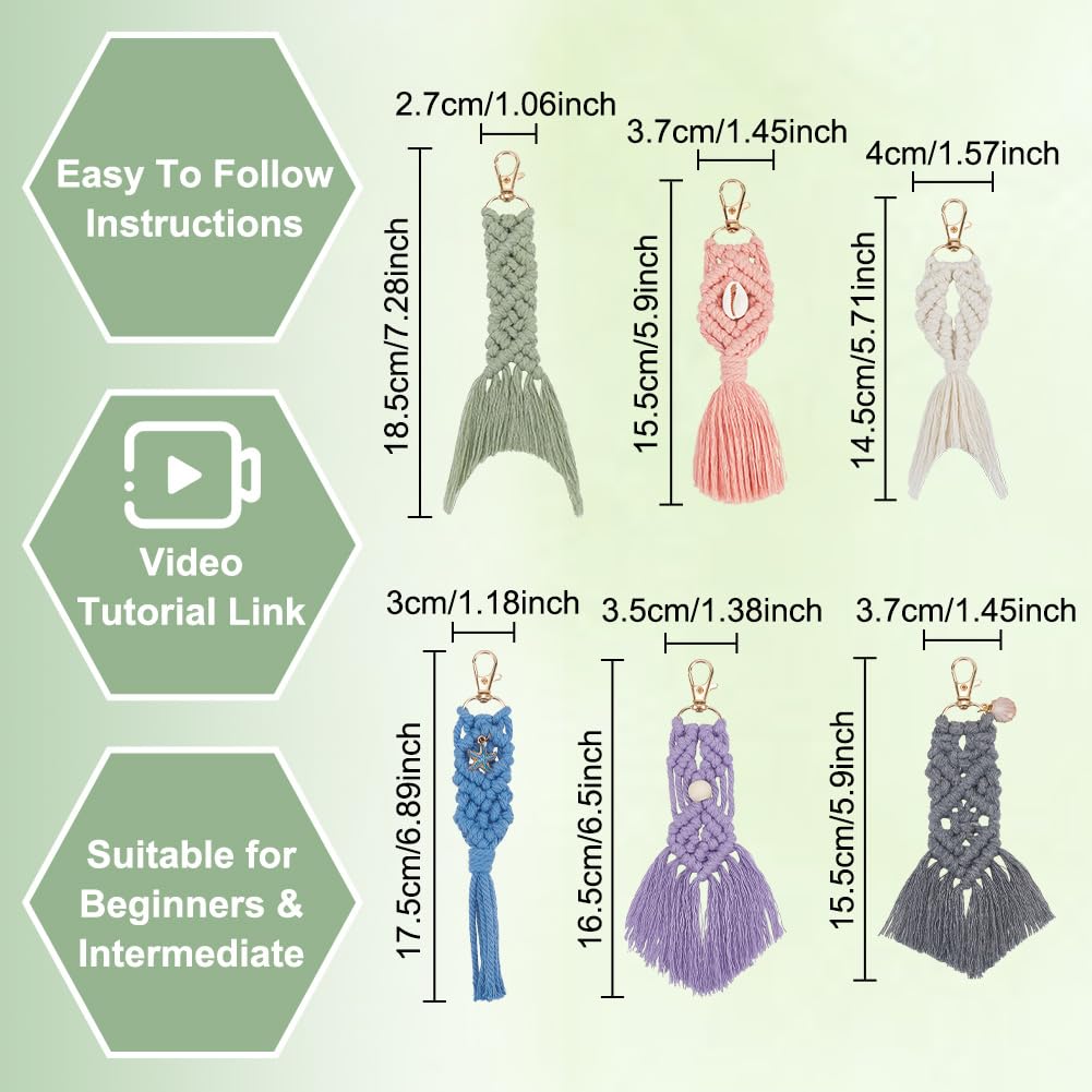 ACRNIGHEET 6PCS Seashell Macrame Keychain Kit for Beginners DIY Boho Macrame Making Kit for Adults Colorful Keychain Macrame Starter Kit for Keys Bags Charms Ocean Macrame Keychain Kit with Video