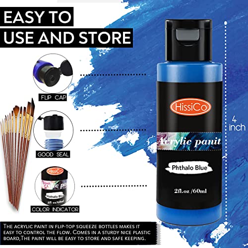- 🖌Multifunctional Acrylic Paint Set- HissiCo acrylic paints are versatile in canvas art, painting, scrap booking and even nail arts, suitable for most surfaces, including stretched canvas, wood, glass, card decorating, plastic, craft foam, ceramic, decorative wallpaper, terracotta, blackboard easel, paper and tin