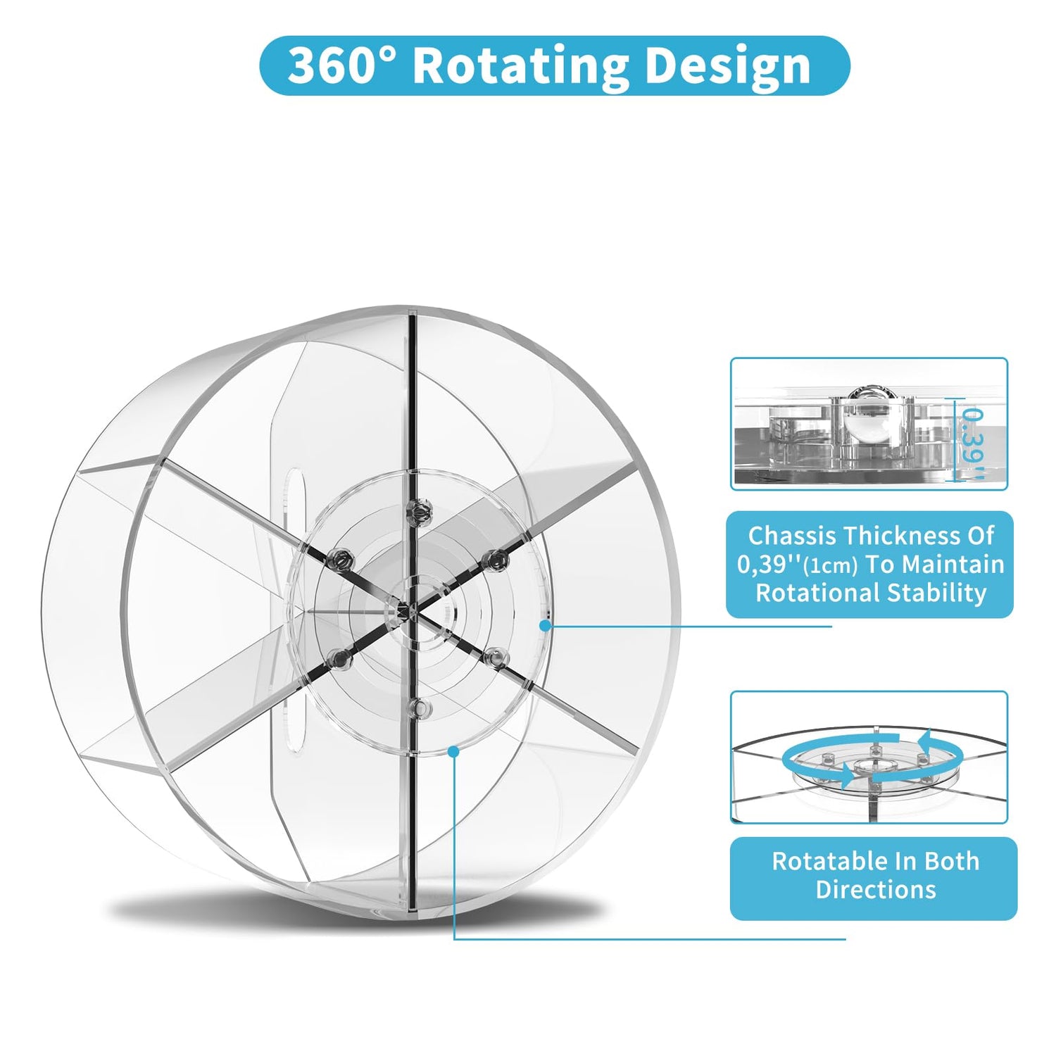 - Clear Spinning Desk Organizer: Wawocs rotating acrylic clear desk top organizer is not only suitable for your own use but also a great organizer for kids partners family friends teachers business partners; the acrylic storage organizer is delicate and durable, ideal for desks workstations podiums dressing tables