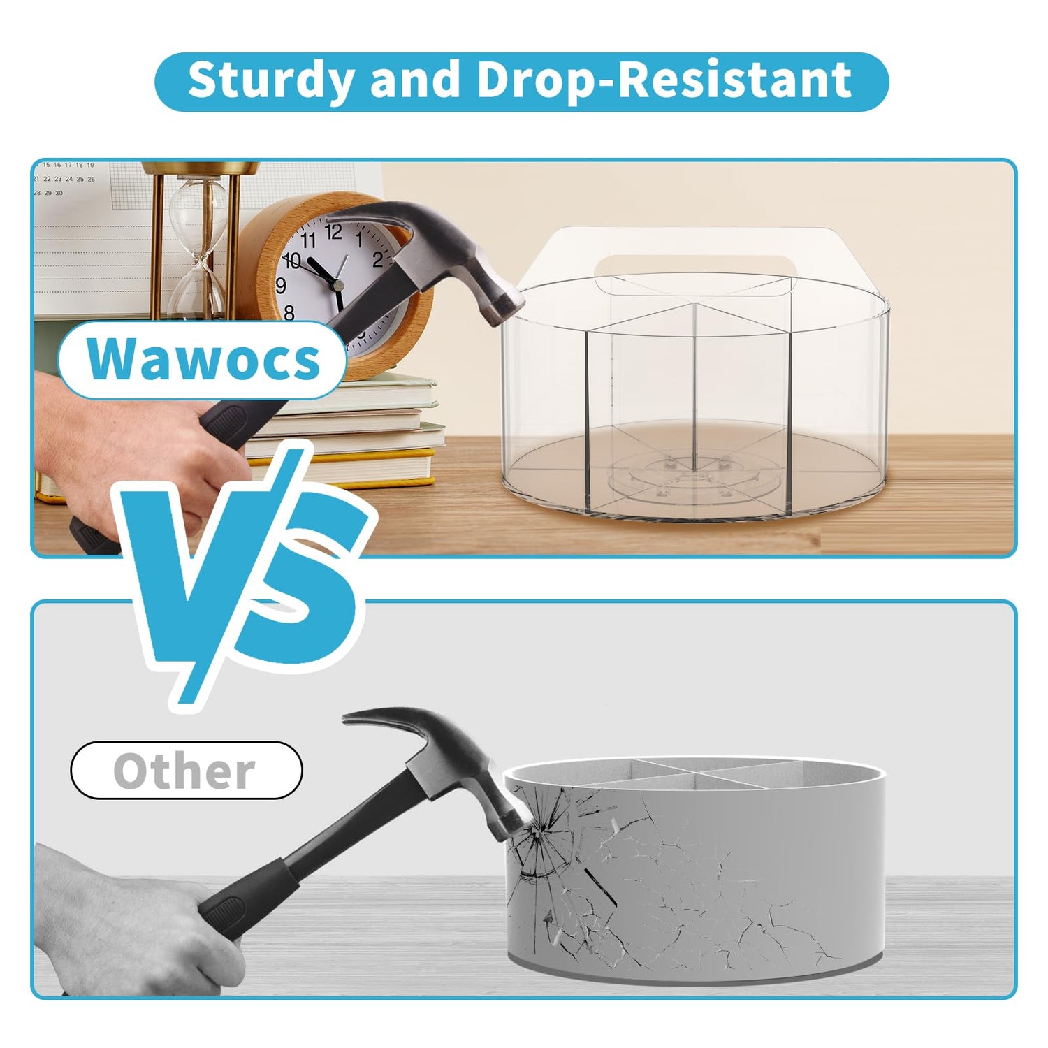 - Acrylic Spinning Desk Organizer Material: Wawocs 360 degree rotating acrylic pencil organizer for desk is made of 0,08-inch acrylic material, which is very sturdy and drop-resistant, odorless, tasteless, heat-resistant, and flame-retardant, highly transparent acrylic panels allow the contents of the acrylic desk organizer to be seen at a glance