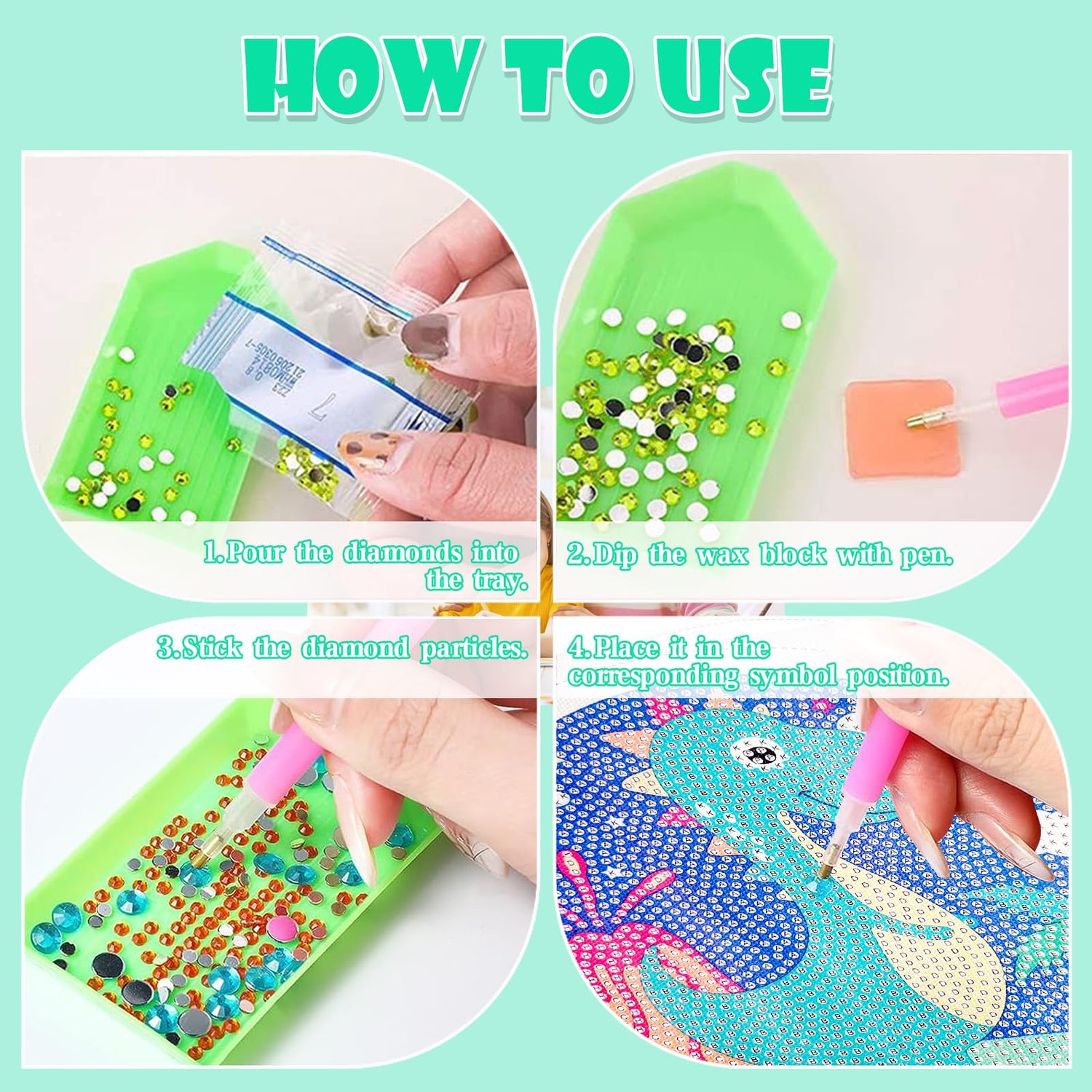 - 【DIY Diamond Art Painting Kit】- ACSAUMMY 5D diamond art painting frame kit package contains cute characters on canvas, corresponding diamonds, and necessary tools, such as diamond pens, trays, and wax, so easy and funny for kids and children.