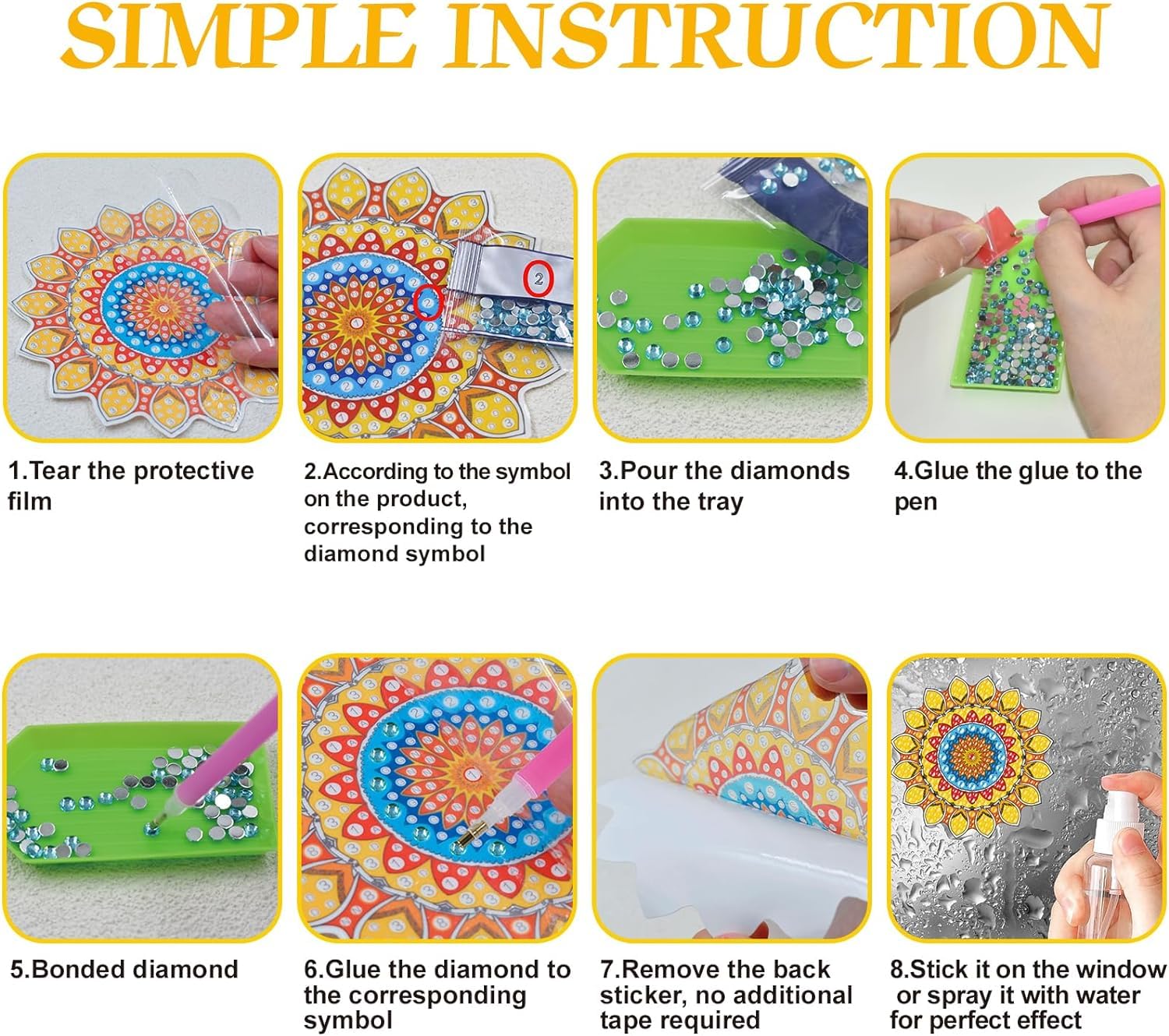 - 【6 Unique Designs in 1 Kit】- ACSAUMMY diamond art window clings kit contains all the necessary accessories, including mandala window clings, resin diamonds, diamond art pen, tray, jelly gum. This diamond art kit is perfect indoor activity for kids and adults.