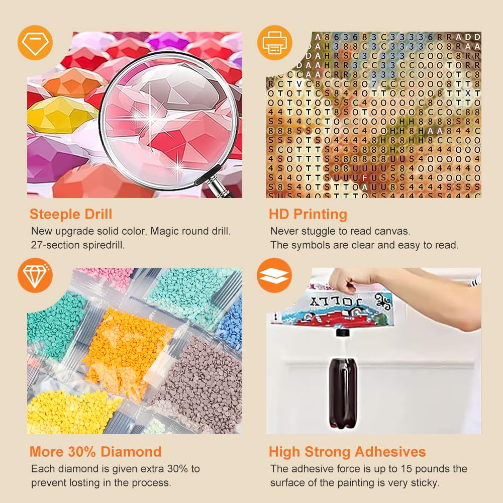- HIGH-QUALITY MATERIAL - Waterproof canvas and non-fading drills make the finished project to keep for more than 20 years. Perfect to decorate your living room, bedroom, kitchen, or anywhere you want to match different decoration style.And it is a perfect gift for birthday and festivals