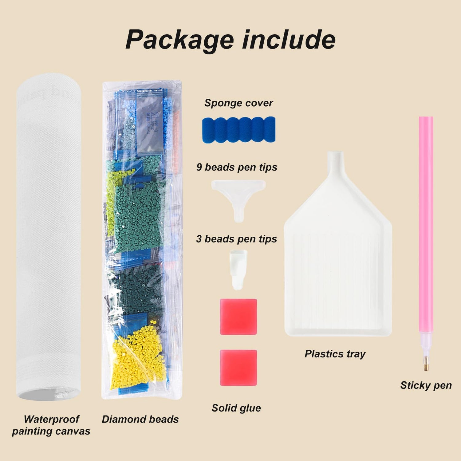 - PACKAGE & SIZE - Diamond art kits package comes with linen canvas, diamonds, tools set, clay. Please note that full diamond painting doesn't include the frame. 12*12inch is the whole canvas size, including blank space. If you want more styles, please click Acudotr