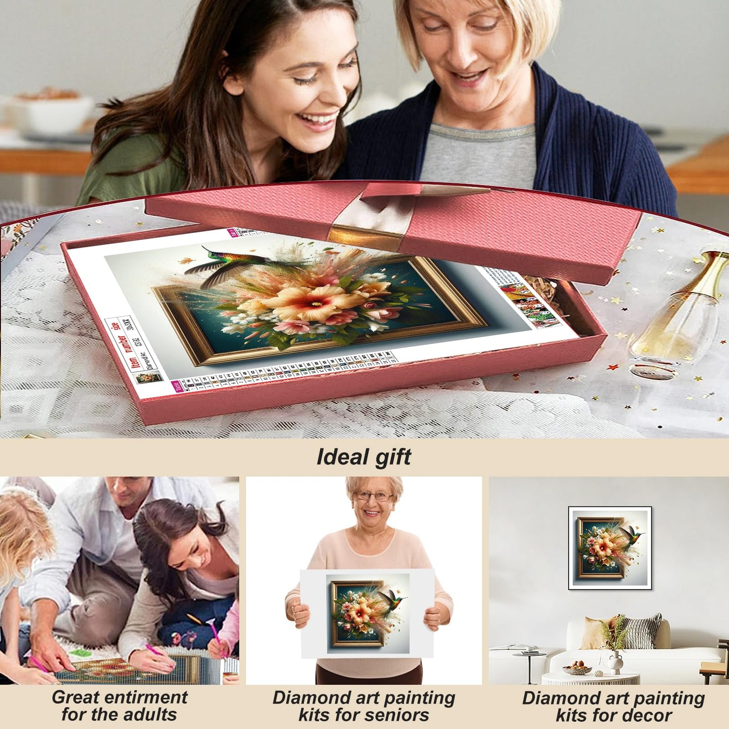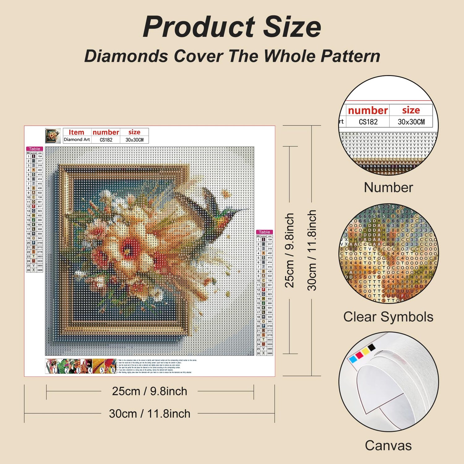 - FULL DRILL - Hummingbird diamond painting kits for adults, the beads cover the whole diamond painting picture and make the picture more glitter, If you have enough time and patience and like challenging project, this is totally for you