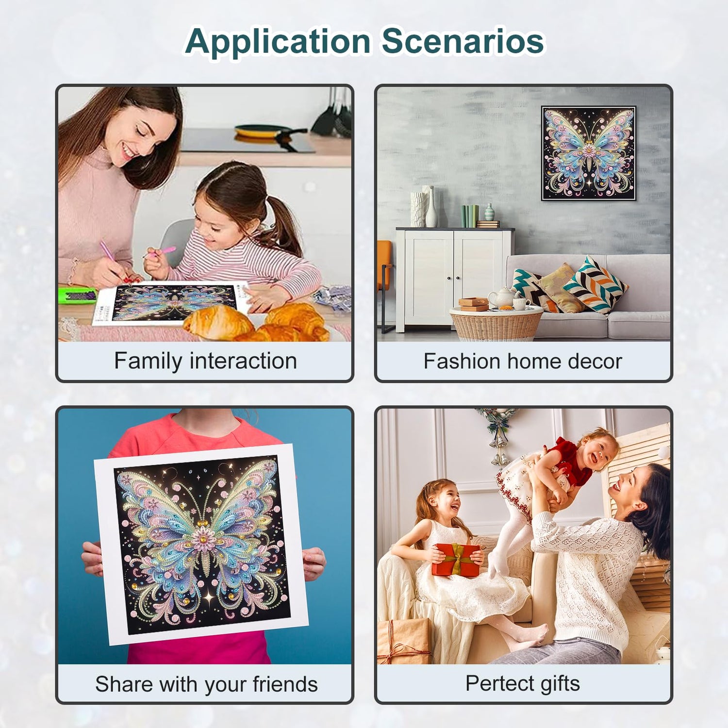 - ECO-FRIENDLY CANVAS - Butterfly Diamond Painting Kits use high clear printing oil canvas, non-toxic, waterproof, environmental protected, will be never fade, making your room more vivifying and Shining in the light