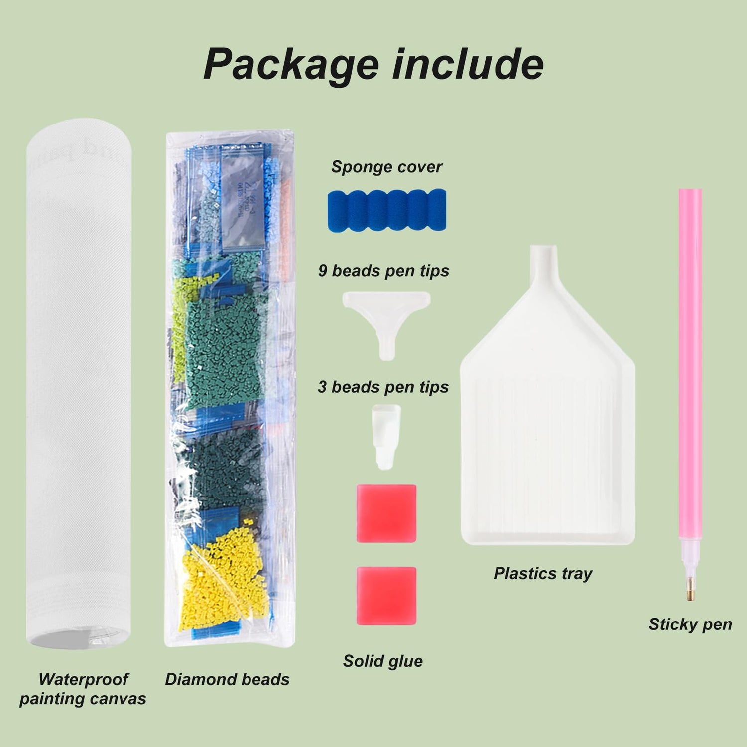 - PACKAGE & SIZE - Diamond art kits package comes with linen canvas, diamonds, tools set, clay. Please note that full diamond painting doesn't include the frame. 12*12inch is the whole canvas size, including blank space. If you want more styles, please click Acudotr