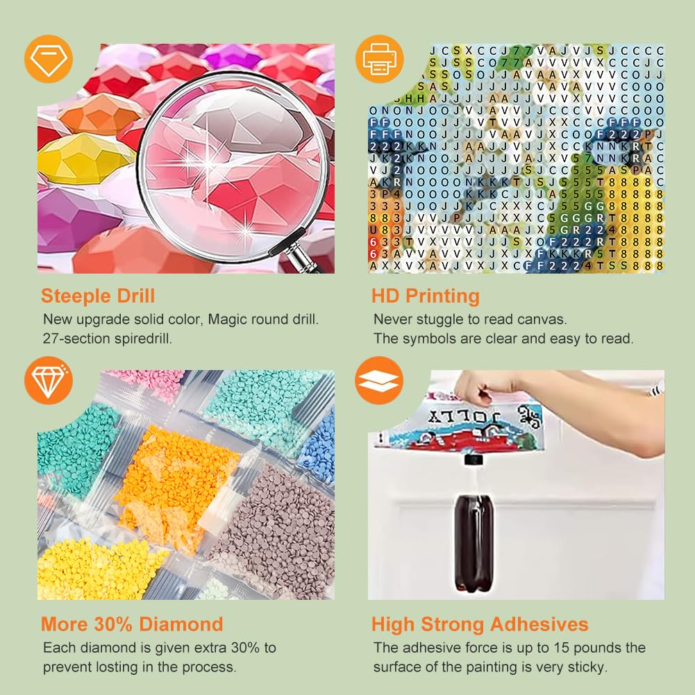 - HIGH-QUALITY MATERIAL - Waterproof canvas and non-fading drills make the finished project to keep for more than 20 years. Perfect to decorate your living room, bedroom, kitchen, or anywhere you want to match different decoration style.And it is a perfect gift for birthday and festivals
