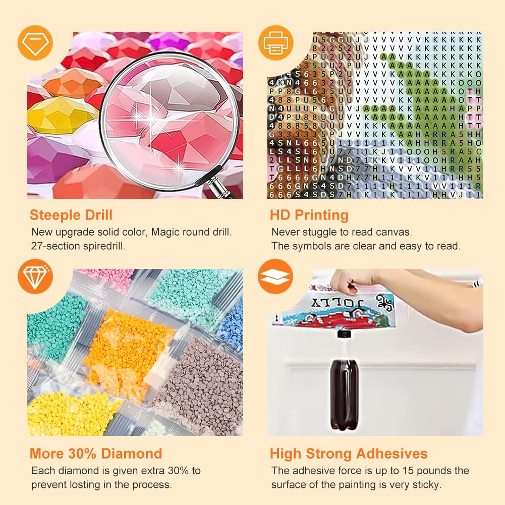 - HIGH-QUALITY MATERIAL - Waterproof canvas and non-fading drills make the finished project to keep for more than 20 years. Perfect to decorate your living room, bedroom, kitchen, or anywhere you want to match different decoration style.And it is a perfect gift for birthday and festivals