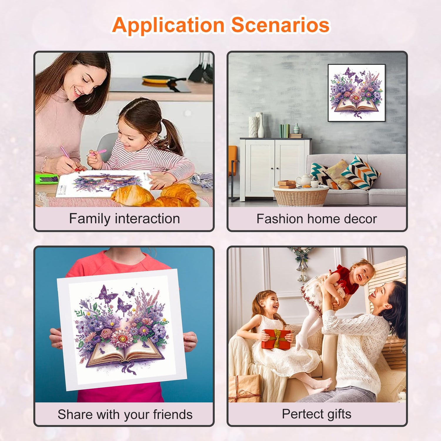 Acudotr Diamond Painting Kits for Adults Book, 5D Special Shape Diamond Art Kits for Beginners, Crystal Rhinestones Diamond Painting for Home Wall Decoration, Flower, 12×12 Inch