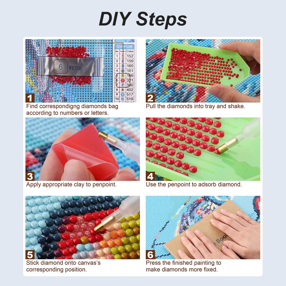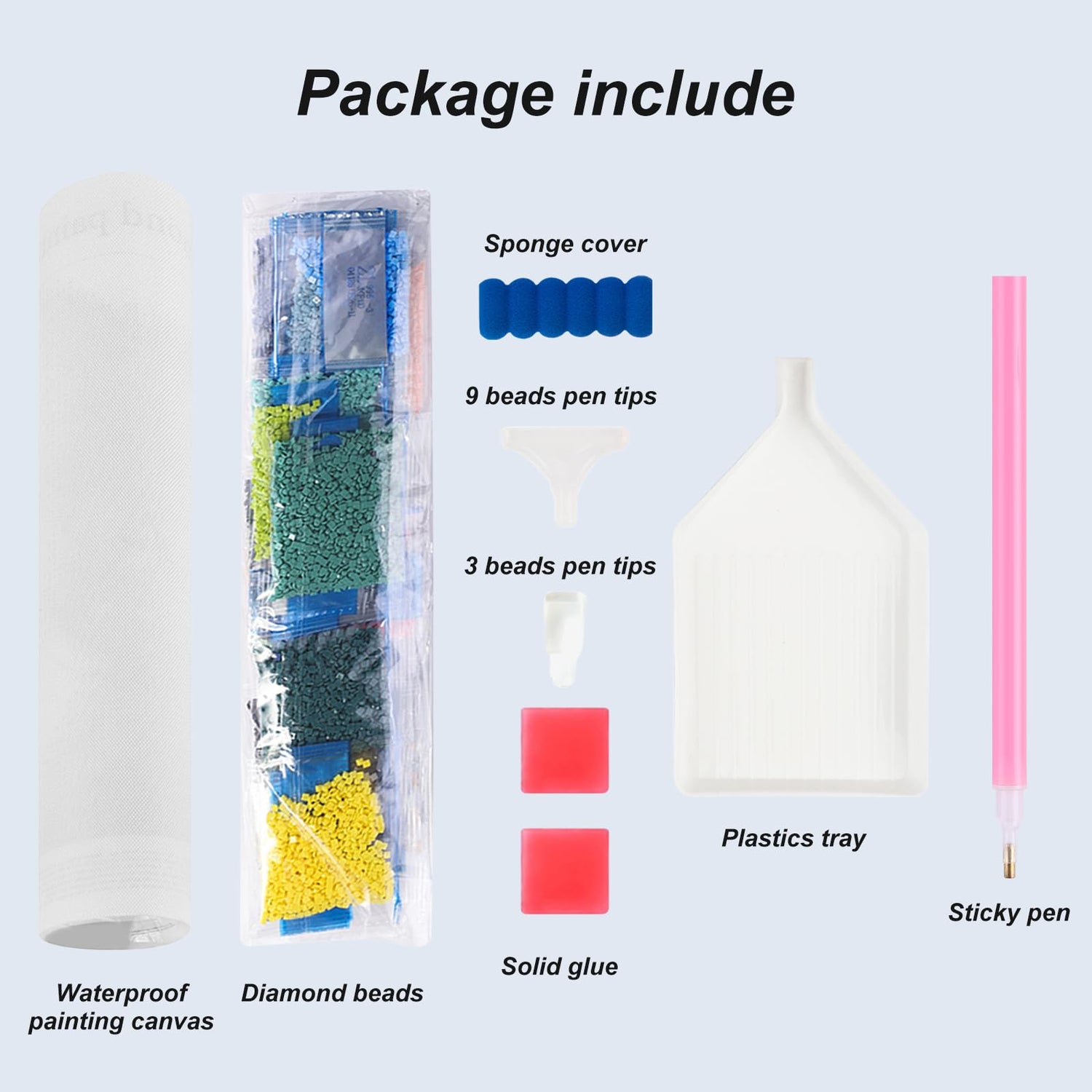 - PACKAGE & SIZE - Diamond art kits package comes with linen canvas, diamonds, tools set, clay. Please note that full diamond painting doesn't include the frame. 12*12inch is the whole canvas size, including blank space. If you want more styles, please click Acudotr
