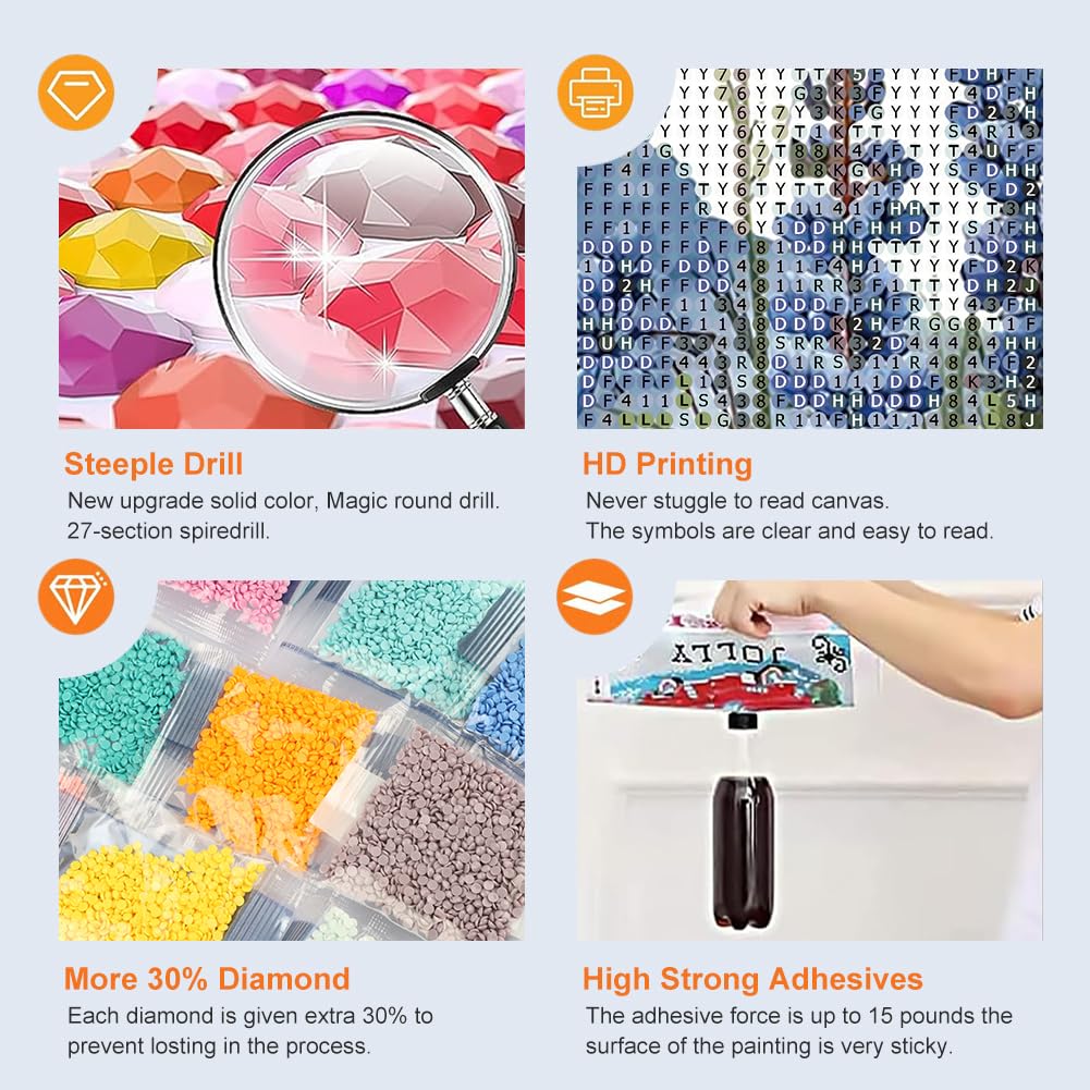 - HIGH-QUALITY MATERIAL - Waterproof canvas and non-fading drills make the finished project to keep for more than 20 years. Perfect to decorate your living room, bedroom, kitchen, or anywhere you want to match different decoration style.And it is a perfect gift for birthday and festivals