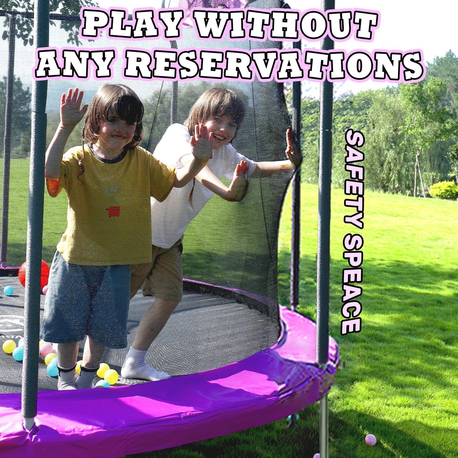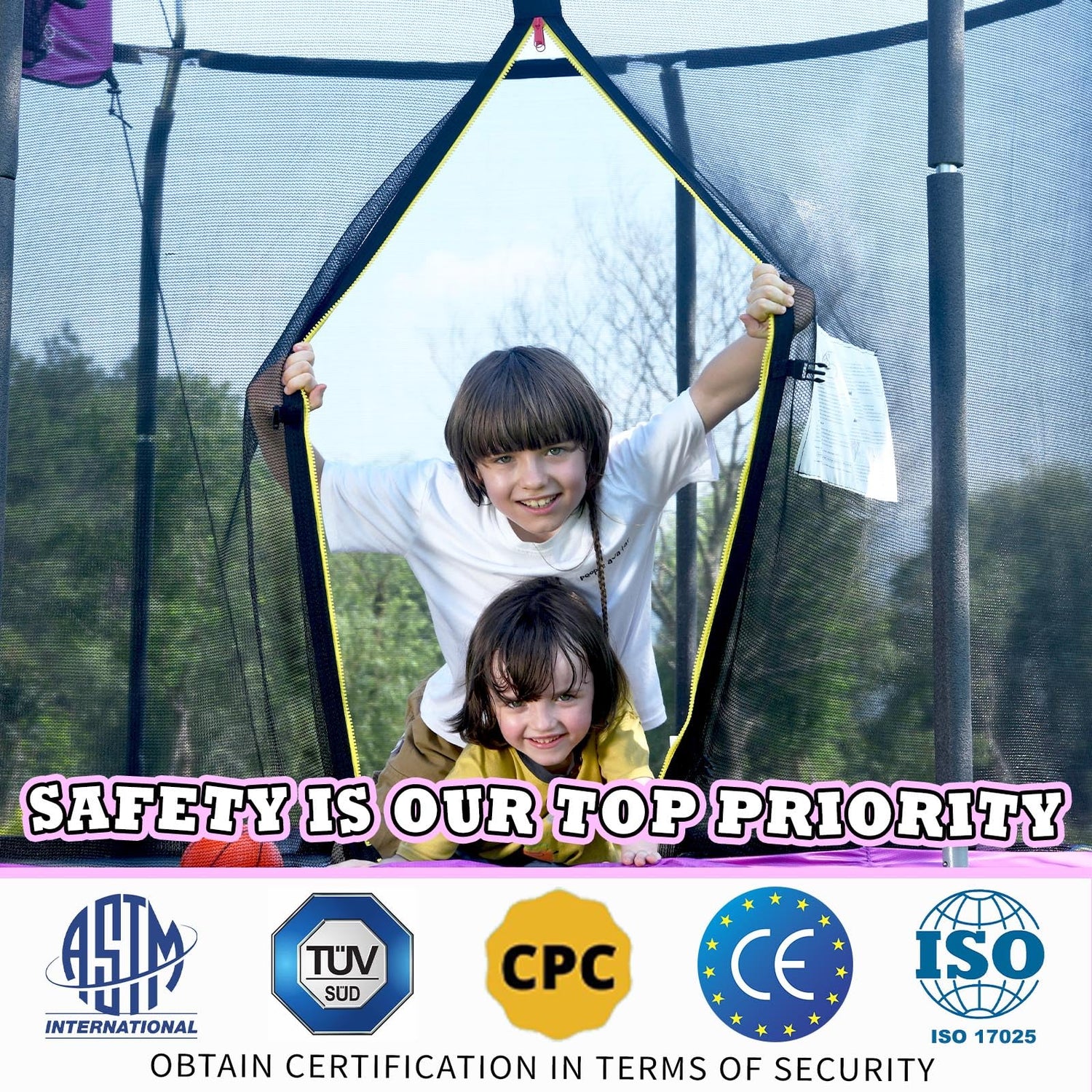 - Safety Net Enclosure & Easy-Access Ladder - Ensure comprehensive safety for your kids with our trampoline! Each trampoline for kids outdoor comes equipped with a high-density flexible safety net, providing UV protection and preventing accidental injuries. With a convenient ladder included, our trampoline with net makes it easy for children to access safely, making it the perfect trampoline with enclosure for worry-free fun.