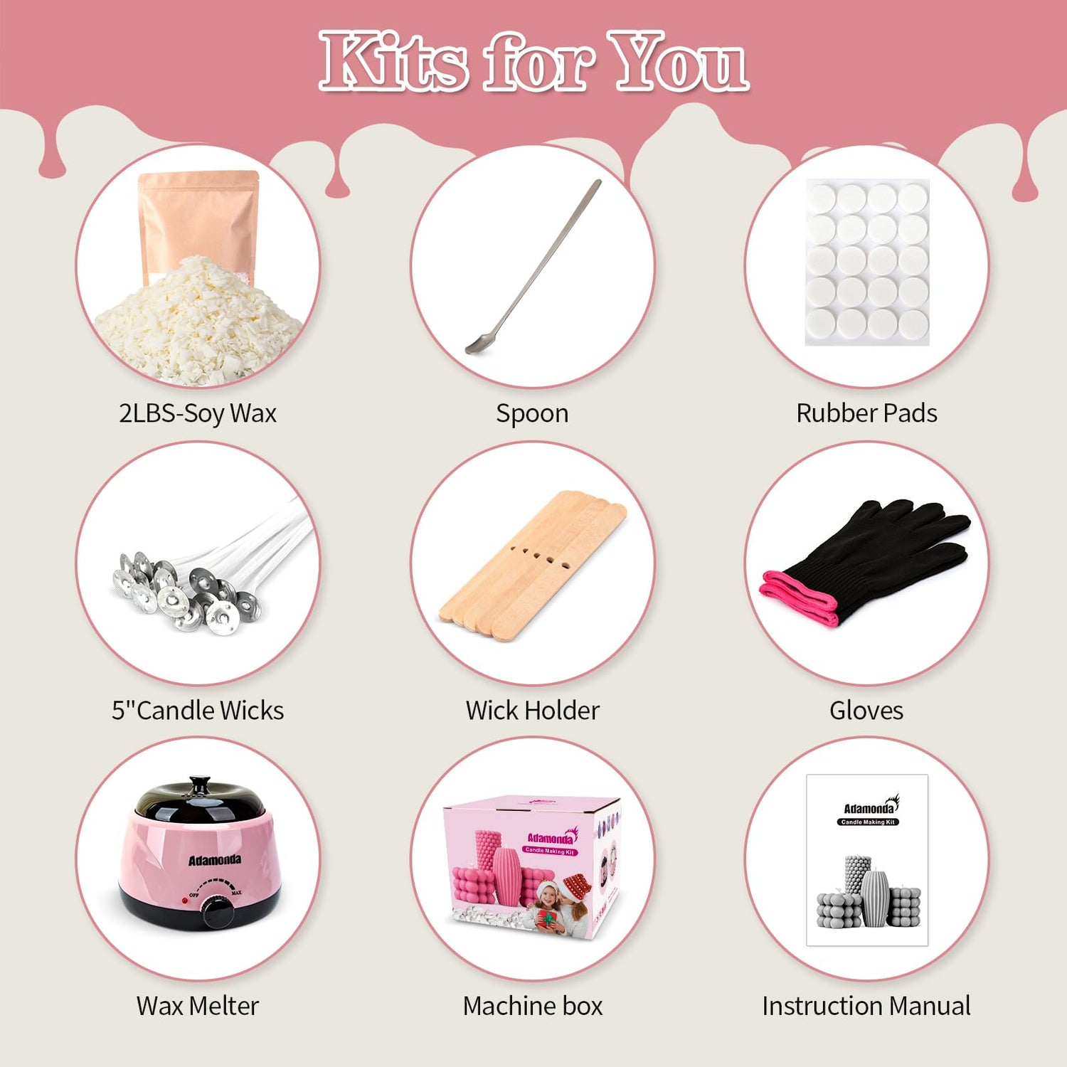 Adamonda Candle Making Kit Supplies for Adults Beginners with Wax Melter,2lbs Soy Wax Flakes Gloves Spoon Sticker Candle Wick,Natural Soy Waxs DIY Candle Making Kits for Starter