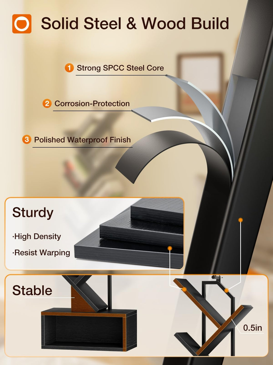 - 【Rock-Solid Stability, Built to Last】No wobbly shelves here! A rugged steel-and-wood T-frame + triangular bracing keeps even heavy books secure. Sturdy base cabinets and non-slip pads prevent tipping — safety-first for busy homes with kids or pets!