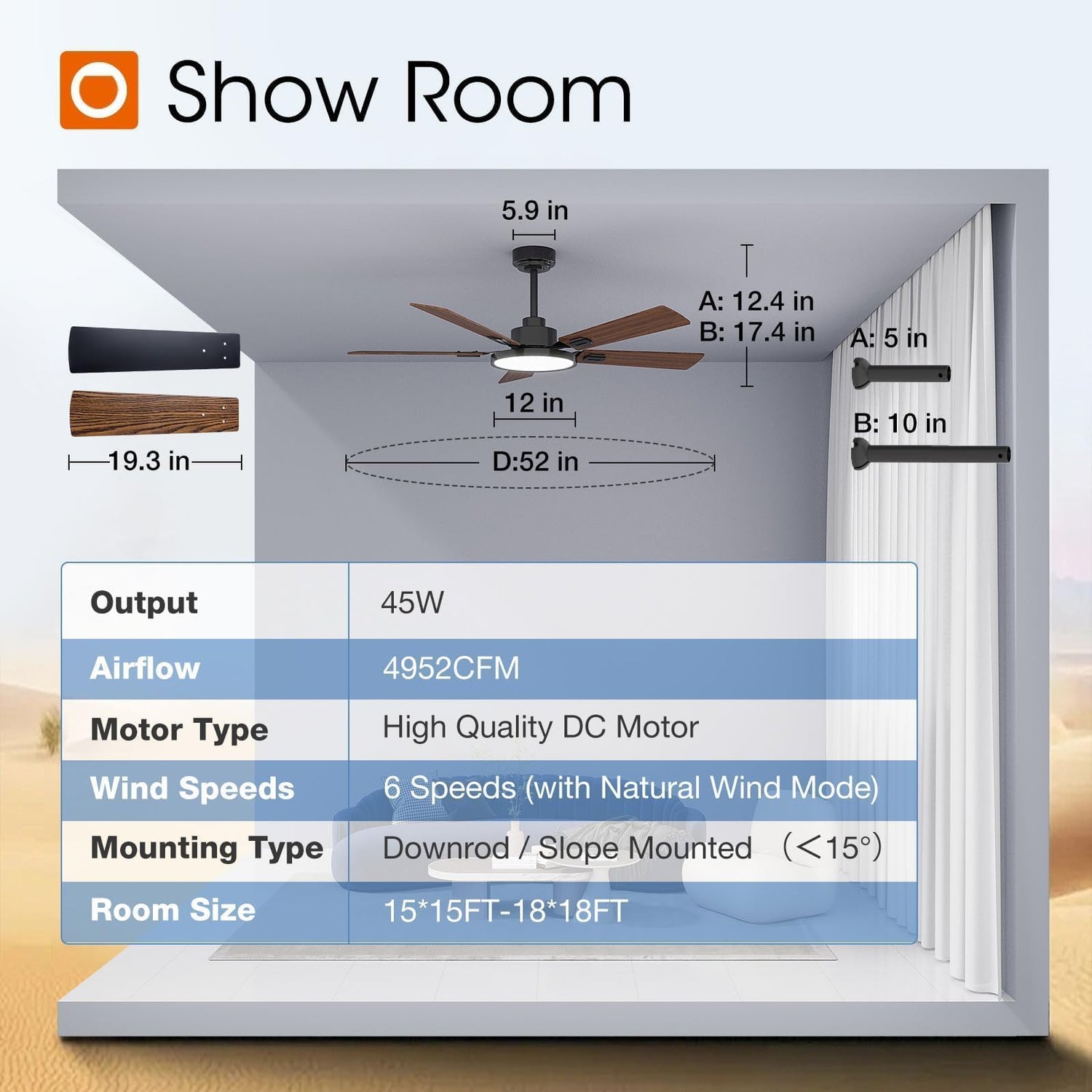 - Reversible DC Motor: The high-quality & high-speed motor brings a perfect wind experience. The wind speed can be adjusted in 6 gears, you can choose between comfortable wind, natural wind and strong wind. Reversible dual-direction fan improves air circulation to keep you warm in winter and cool in summer. Our fan blades are double sided in different colors, one side is black and the other side is walnut. Choose the fan blade color that best fits your home decor!