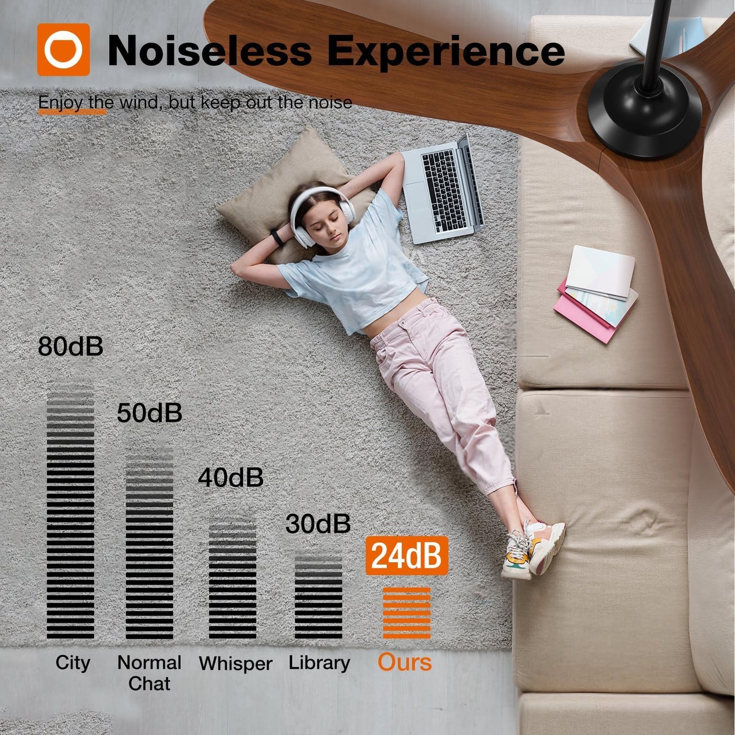 - Noise-free Experience: Enjoy the wind, but keep the noise out! This ceiling fan is designed for light sleepers, brings you comfortable sleeping with a quiet living environment. The volume is low to 35dB when the fan is running, like the sound of falling leaves, or like a butterfly flaps its wings(30dB). It is more suitable for families with babies or elders.
