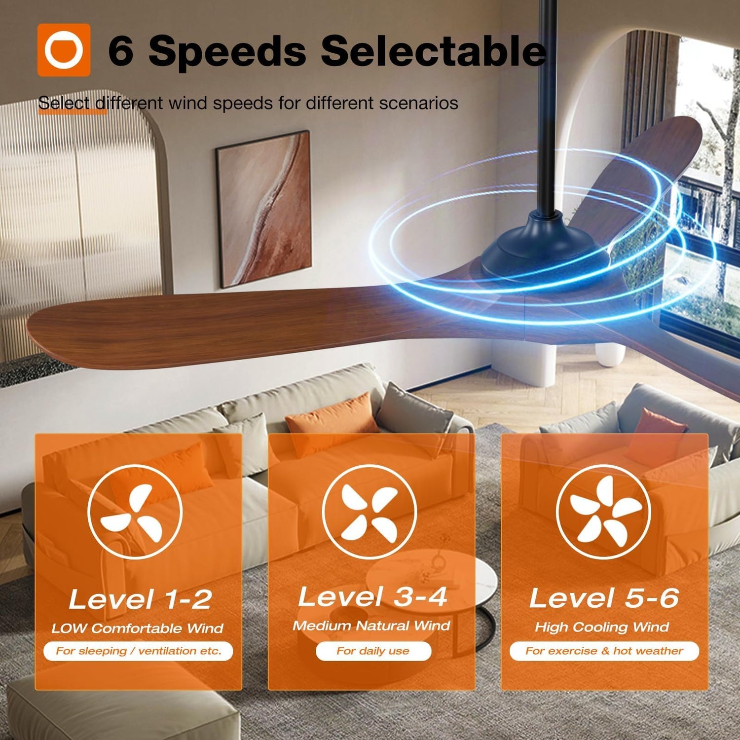 - Reversible DC Motor: The high-quality & high-speed motor brings a perfect wind experience. The wind speed can be adjusted in 6 gears, you can choose between comfortable wind, natural wind and strong wind. Reversible dual-direction fan improves air circulation to keep you warm in winter and cool in summer.