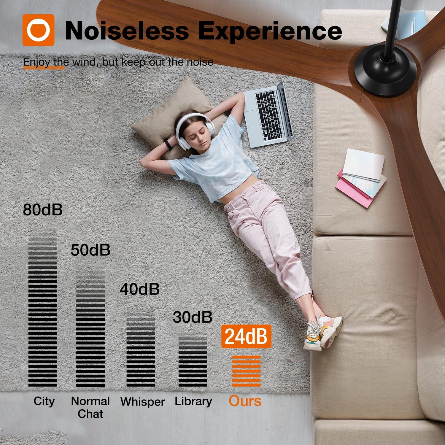 - Noise-free Experience: Enjoy the wind, but keep the noise out! This ceiling fan is designed for light sleepers, brings you comfortable sleeping with a quiet living environment. The volume is low to 35dB when the fan is running, like the sound of falling leaves, or like a butterfly flaps its wings(30dB). It is more suitable for families with babies or elders.