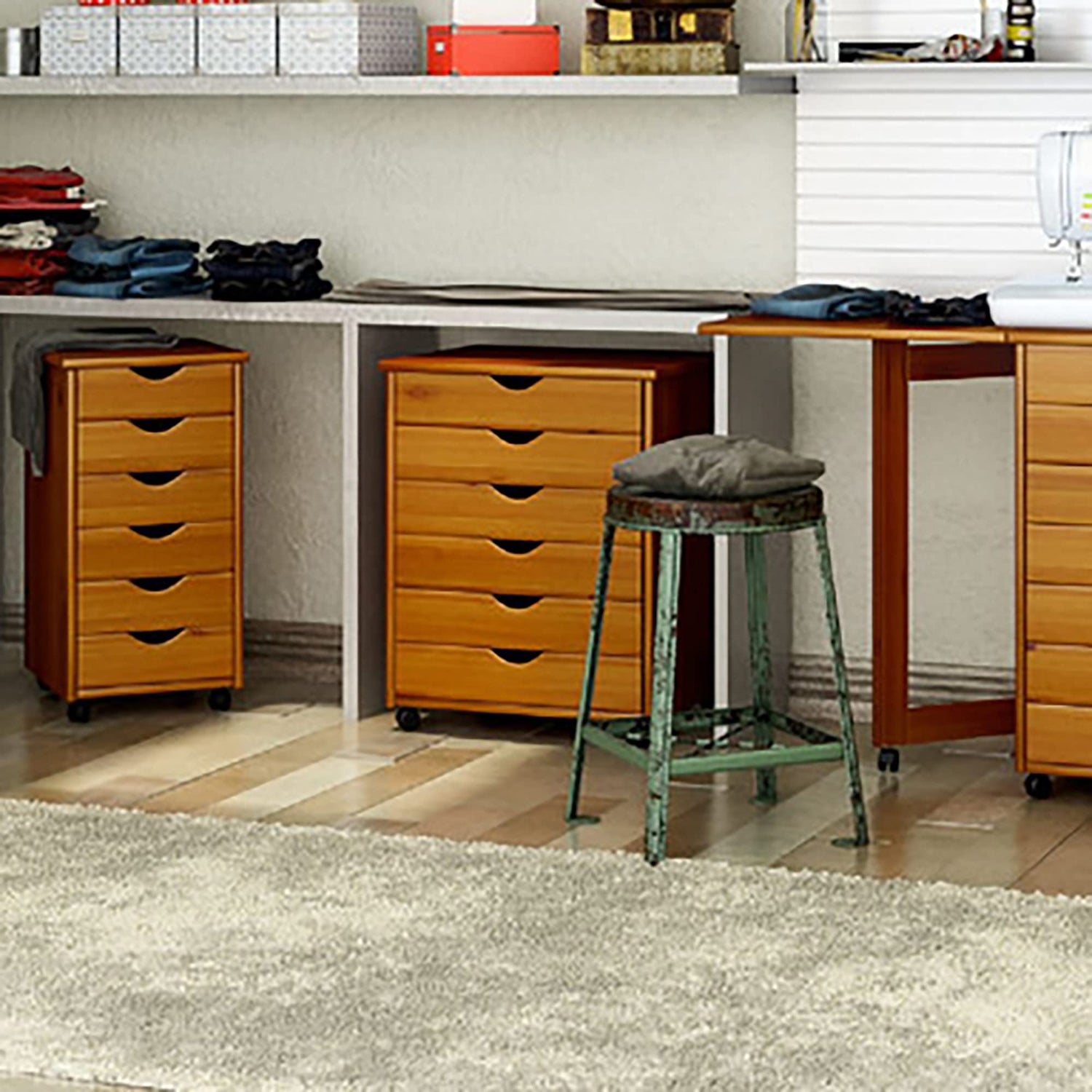 Adeptus Original Roll Cart, Solid Wood, 6 Drawer Extra Wide Drawers Roll Carts, Medium Pine