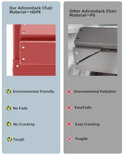 - Easy to Clean: HDPE adirondack chair is much easier to maintain and clean compared to regular solid wood. If there are any stains on it, simply wipe it with a dry cloth dampened with water, then use it to gently clean the chair. Before long, your Adirondack chairs will look good as new.