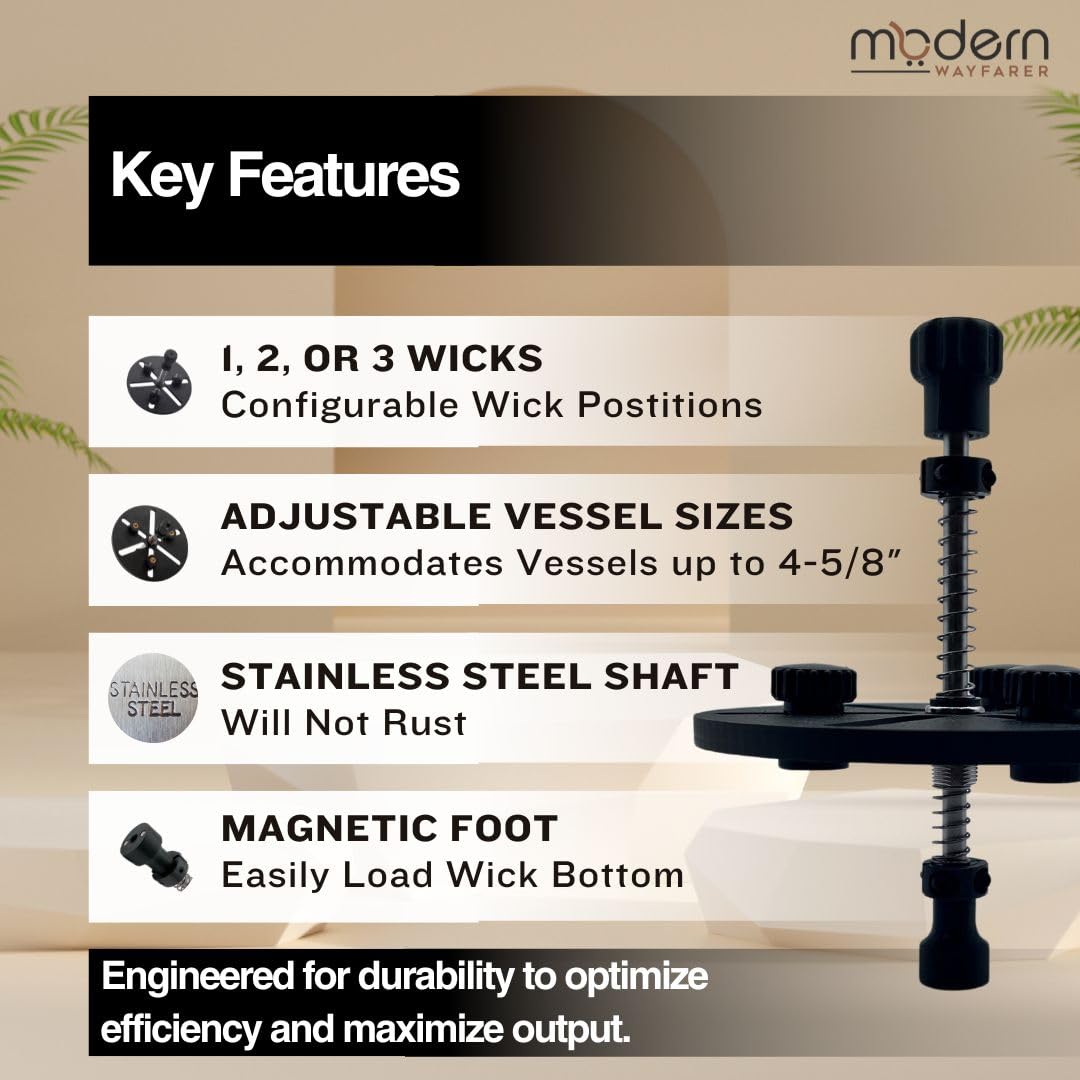 Adjustable Candle Wick Centering Tool – 3-Wick Holder for Candle Making Kit – Wick Setter Tool, Wick Placement Device, Candle DIY Accessory – Handmade in USA