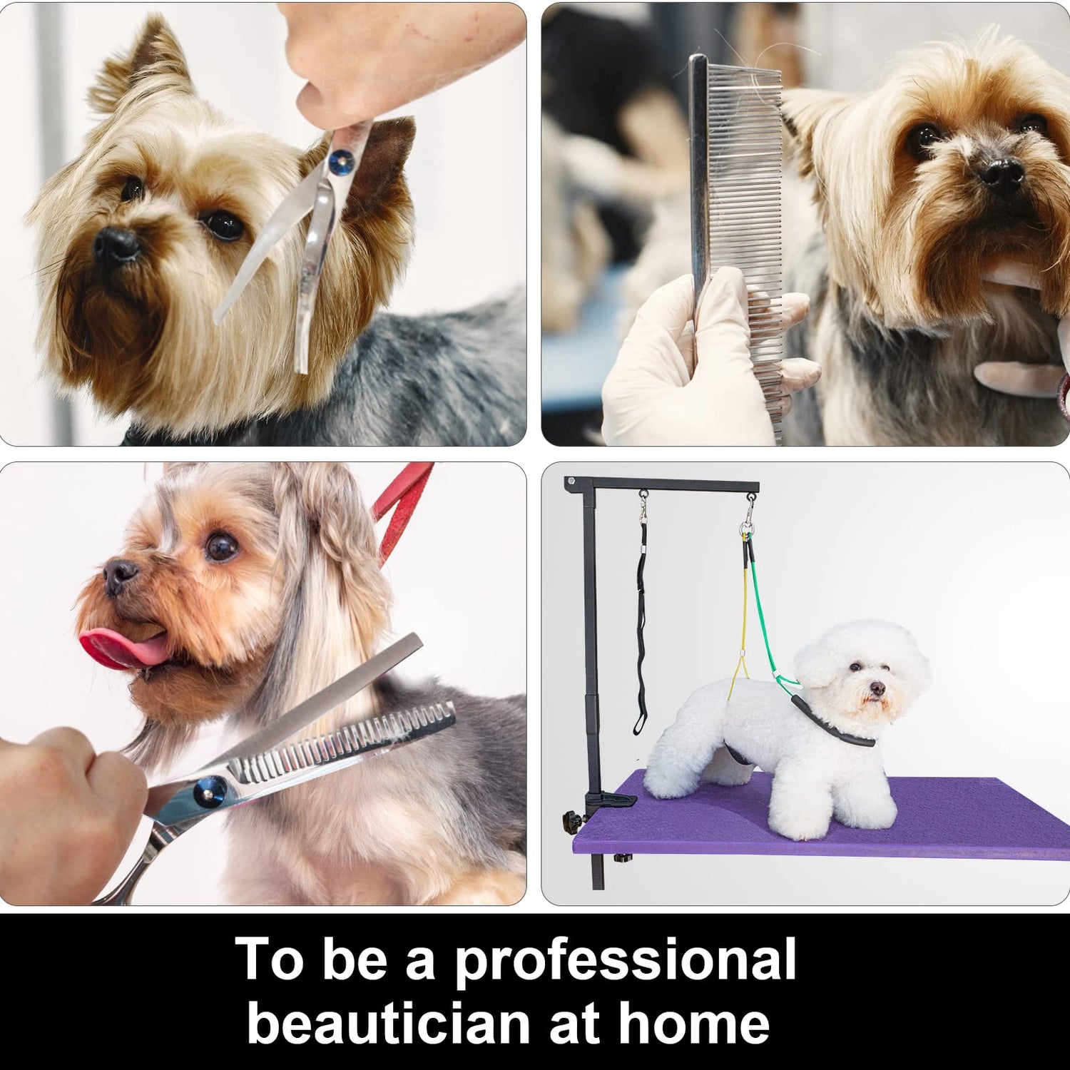 - 【Context of Use】Pet groomers can use a grooming table arm and dog restraint rope to safely and securely hold a dog's head and haunches in place during grooming, bathing, nail trimming, and hair blowing.and dog care and is an ideal solution for keeping dogs standing in comfort and helps control overly excitable pets from excessive moving.