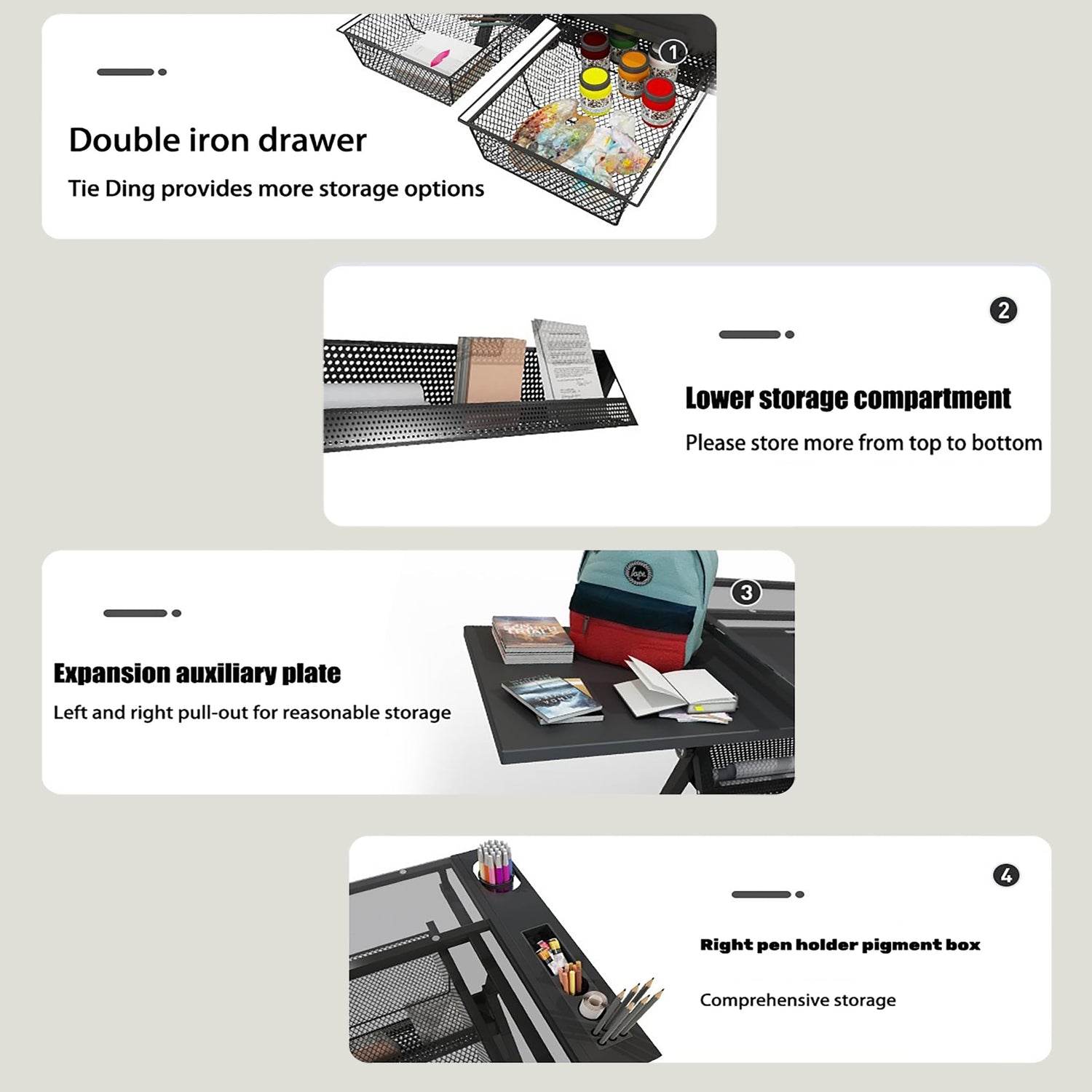 - Table/Stool Set: Perfectly tailored for creative projects, this artist desk with storage comes with a matching stool featuring a sturdy metal frame and a black PU-wrapped, sponge-padded seat. The set provides a comfortable and coordinated workspace for art, crafts, sketching, and more. Ideal as a vintage desk, drawing table, or craft desk, this set ensures a productive and inspiring environment in any art studio.