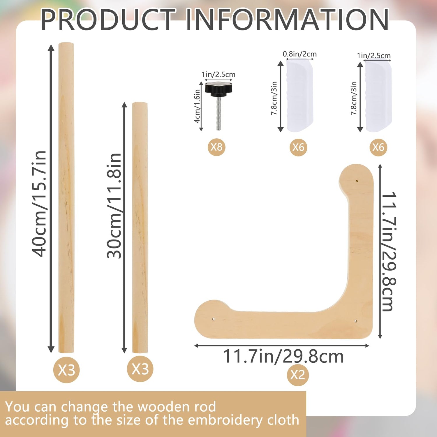 - Adjustable Design: This adjustable embroidery table stand comes with 2 wooden rods (11.8 inches and 15.75 inches), allowing you to choose the right size for your embroidery fabric. The cross stitch frame can be used on a tabletop or your lap, making it ideal for cross-stitch, needlepoint embroidery, and tapestry projects.