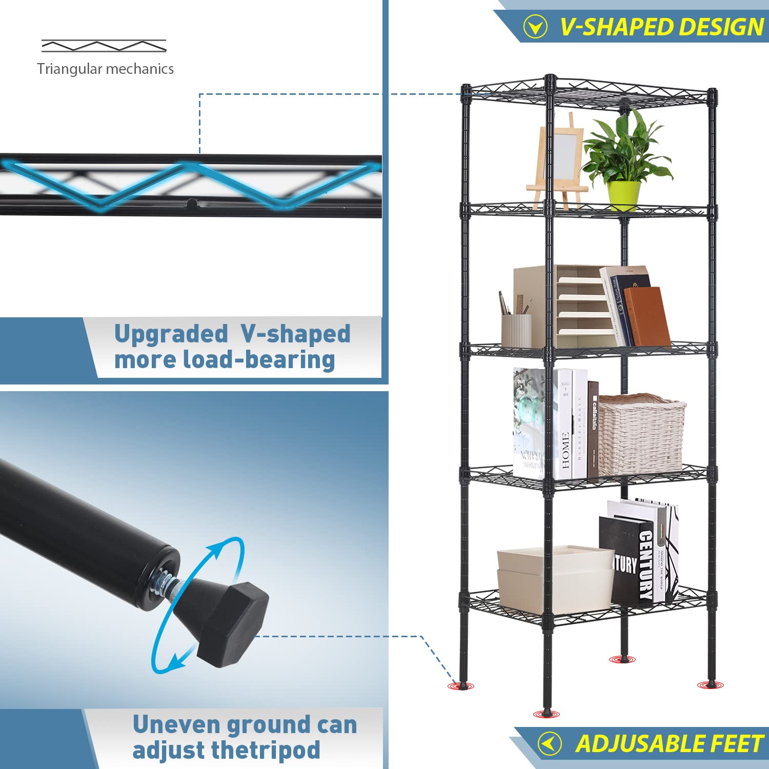 Adjustable NSF-Certified Metal Shelf Wire Shelving Unit Storage for Small Places Restaurant Garage Pantry Kitchen Garage Rack (Black, 16.7L×11.8W×47.6H)