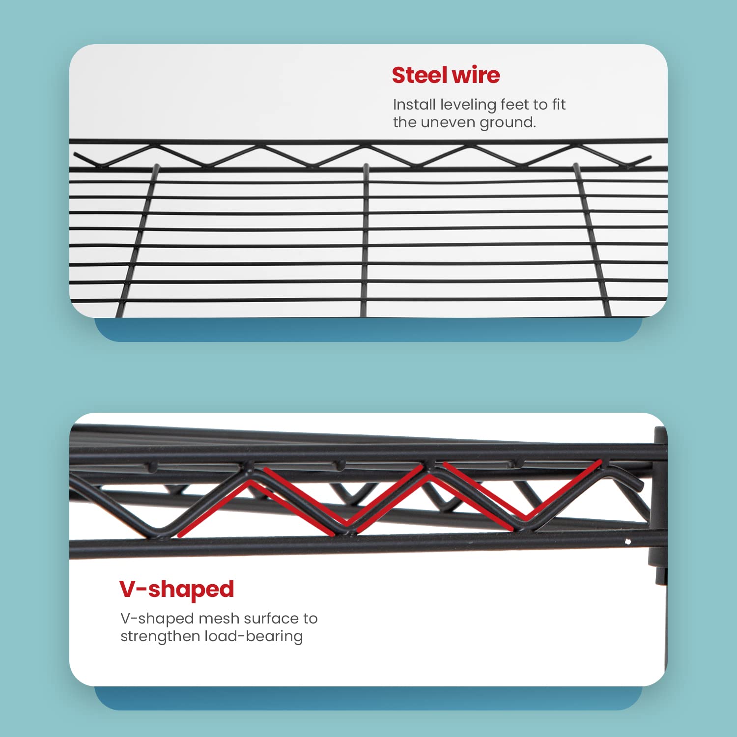 Details: This is wire shelf,all the shelf is can adjust height .The shelving unit is made of steel wire shelving.The weight limit for each shelf is 250/150pounds.The storage shelves provide an enormous amount of space for you and no occupy too much space.You can use this wire shelving in the kitchen bedroom garage and more. Tools, books,household appliances and other things can be placed on this wire shelving.