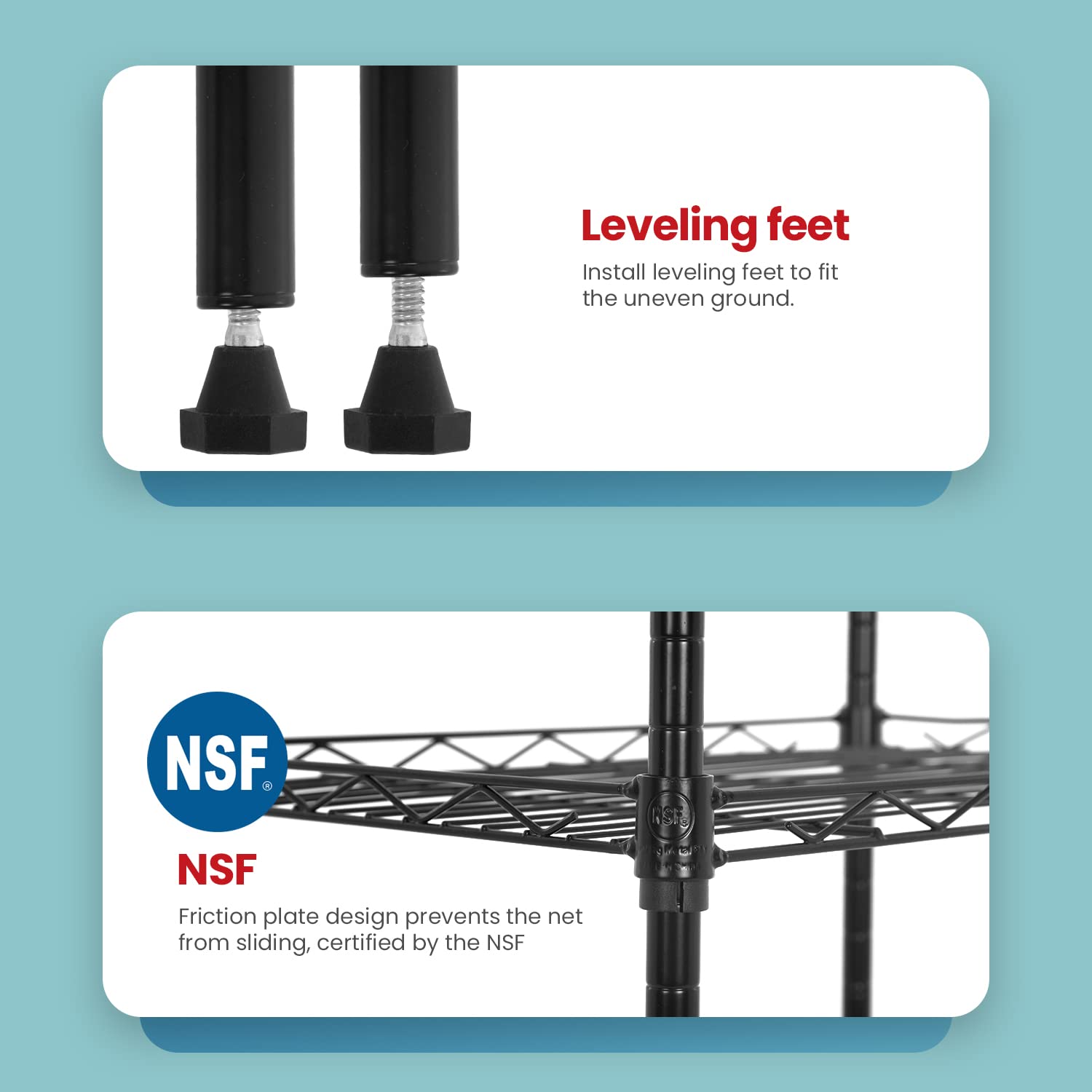 - √【ADJUSTABLE】: You can adjust the height of the storage shelves according to the size of the item.The spacing of each layer of this wire shelf can be adjusted.shelves adjustable leveling feet allow the wire shelving unit to be placed on uneven ground--a simple twist is all it takes to stabilize.storage shelves wire shelf wire shelving unit.