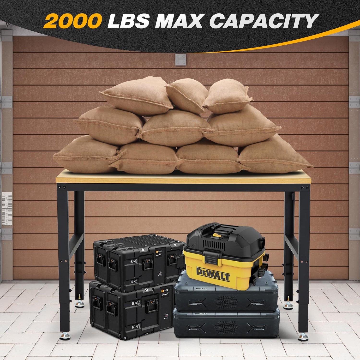 Adjustable Workbench 48" 2000 Lbs Load Capacity Heavy Duty Wood Work Bench, Smooth Surface Work Table for Garage, Workshop, Office, Home, Commercial